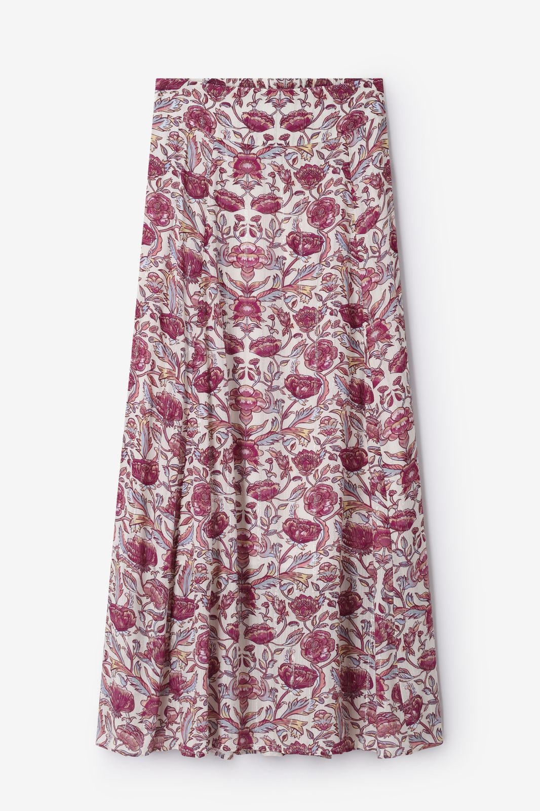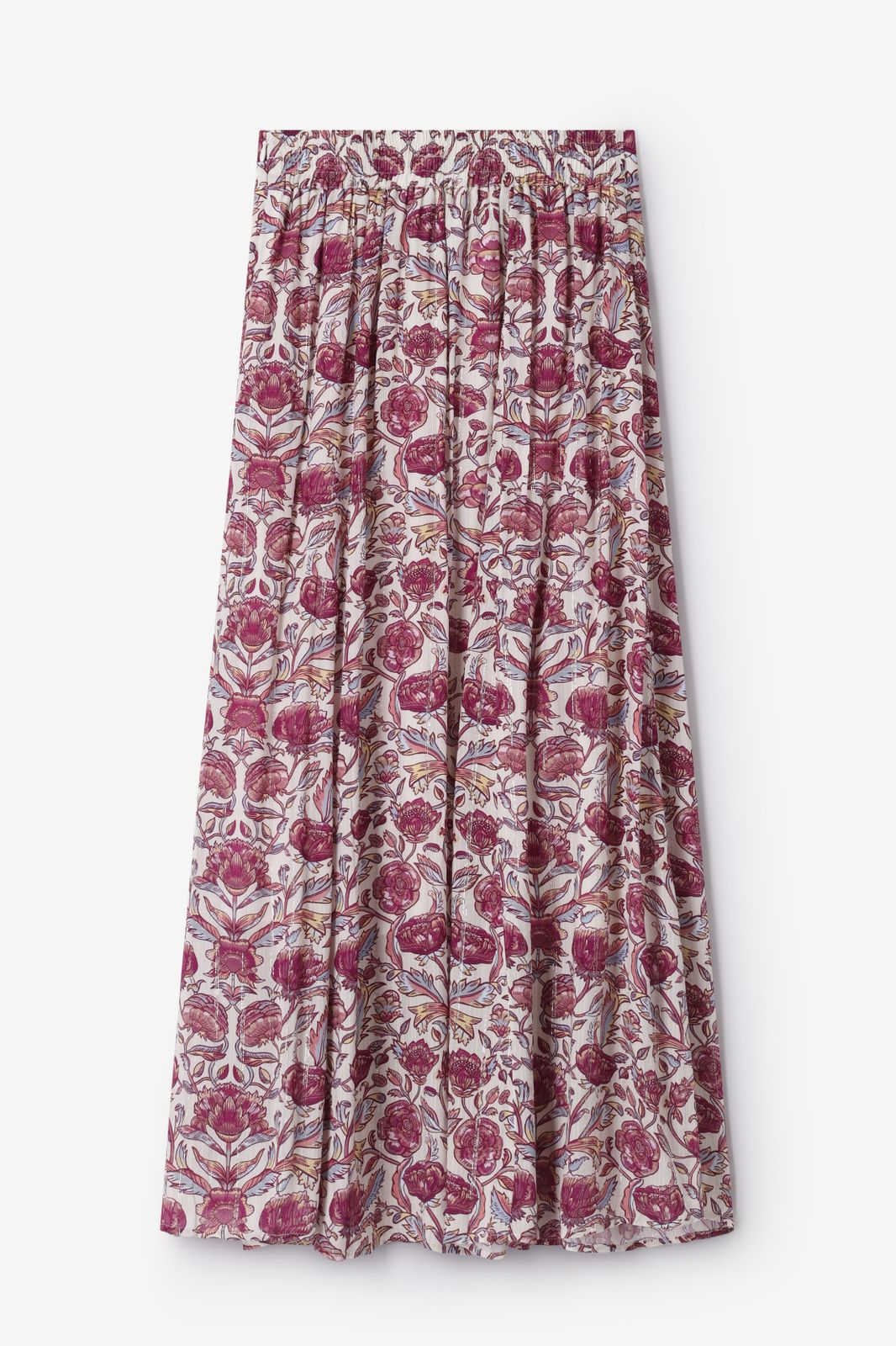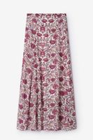 Jupe blanche de Sissy-Boy. La jupe longue a une taille haute, un élastique à l'arrière et une fermeture éclair sur le côté. La jupe est également dotée d'un imprimé fleuri rose et d'un effet pailleté en lurex. Composition : 98% viscose, 2% polyester.