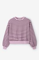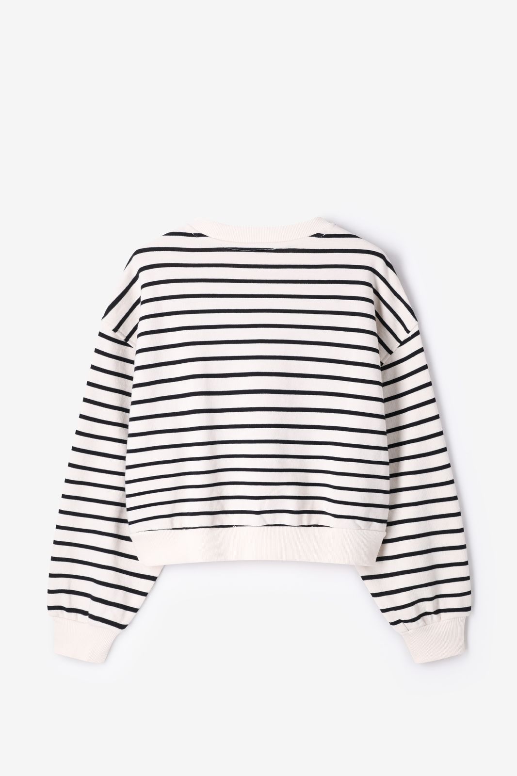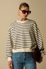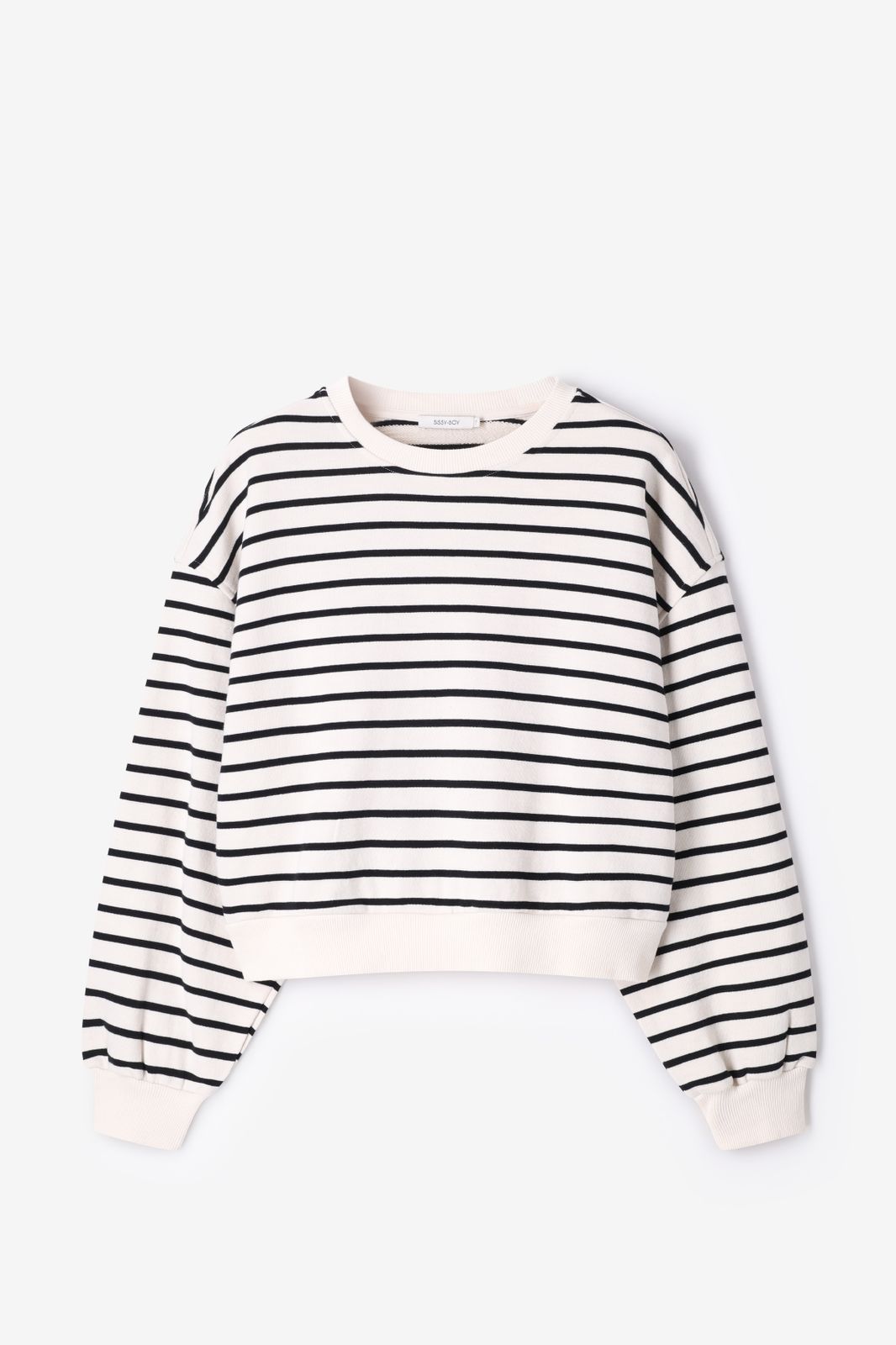Sweat blanc de Sissy-Boy. Le sweat a des manches longues bouffantes avec épaules basses, un col rond, des bords côtelés et une coupe ample. Le sweat est également doté de rayures noires. Composition : 100% coton.
