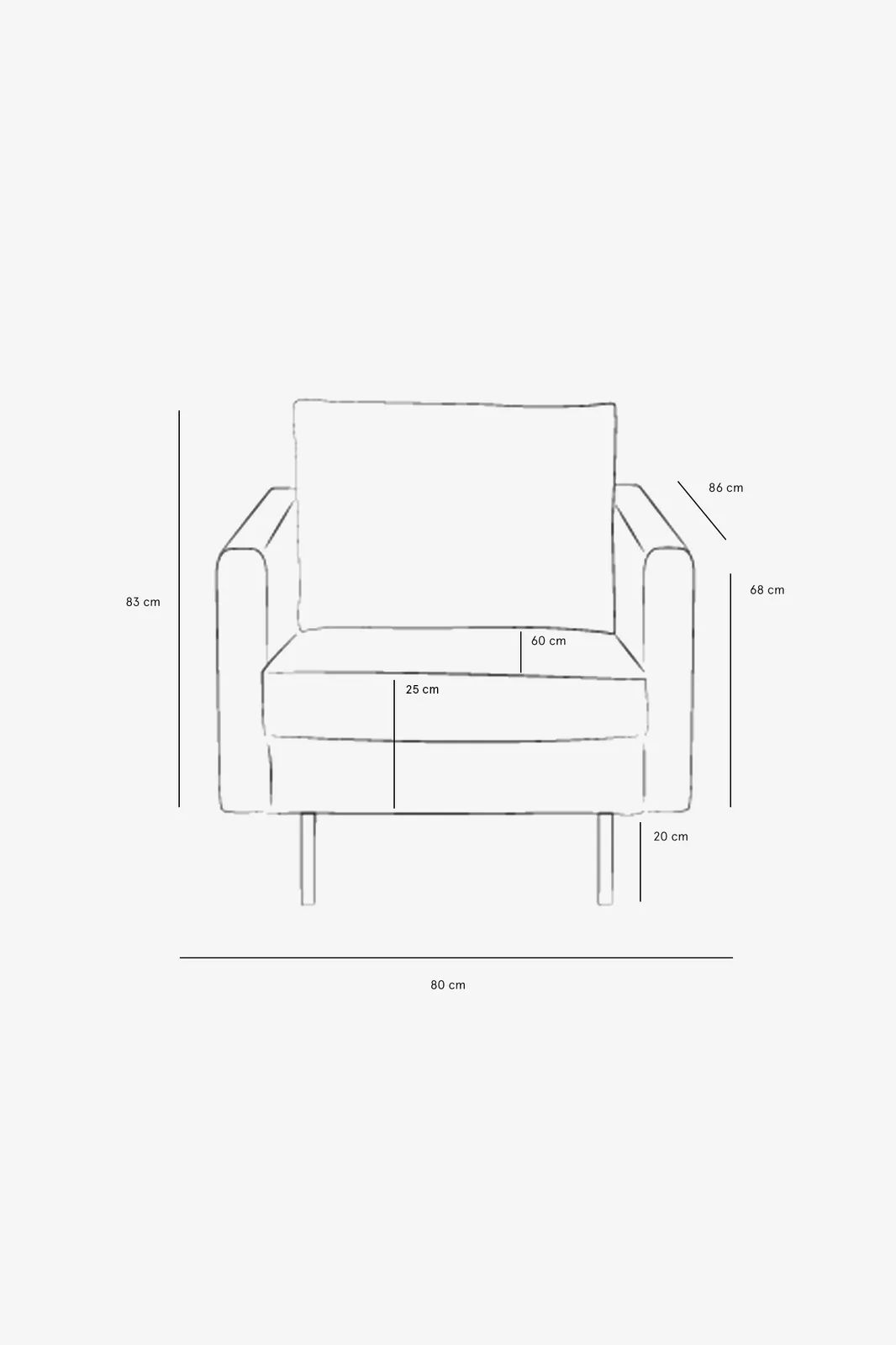 Confortable fauteuil sobre en cuir écologique de la série Amsterdam. Le fauteuil a un design épuré car la couture assemble les bords du côté intérieur. Le fauteuil est disponible en trois couleurs : marron, noir et vert foncé. Le fauteuil a des ressorts zigzag et les pieds peuvent être démontés.
