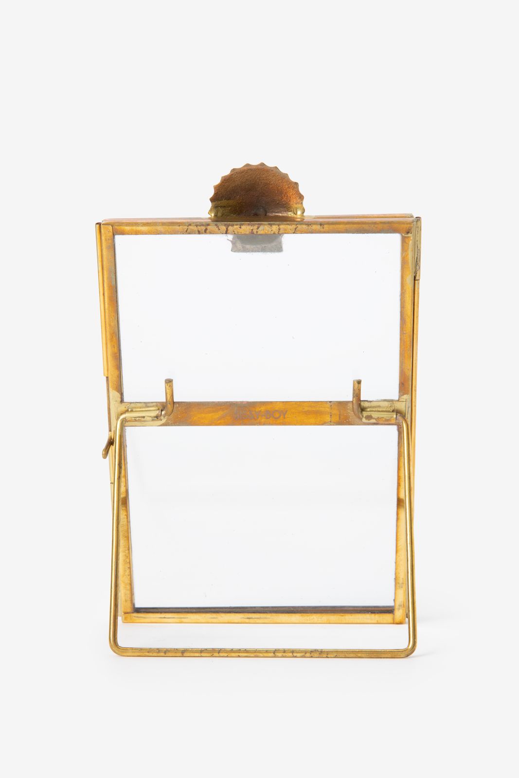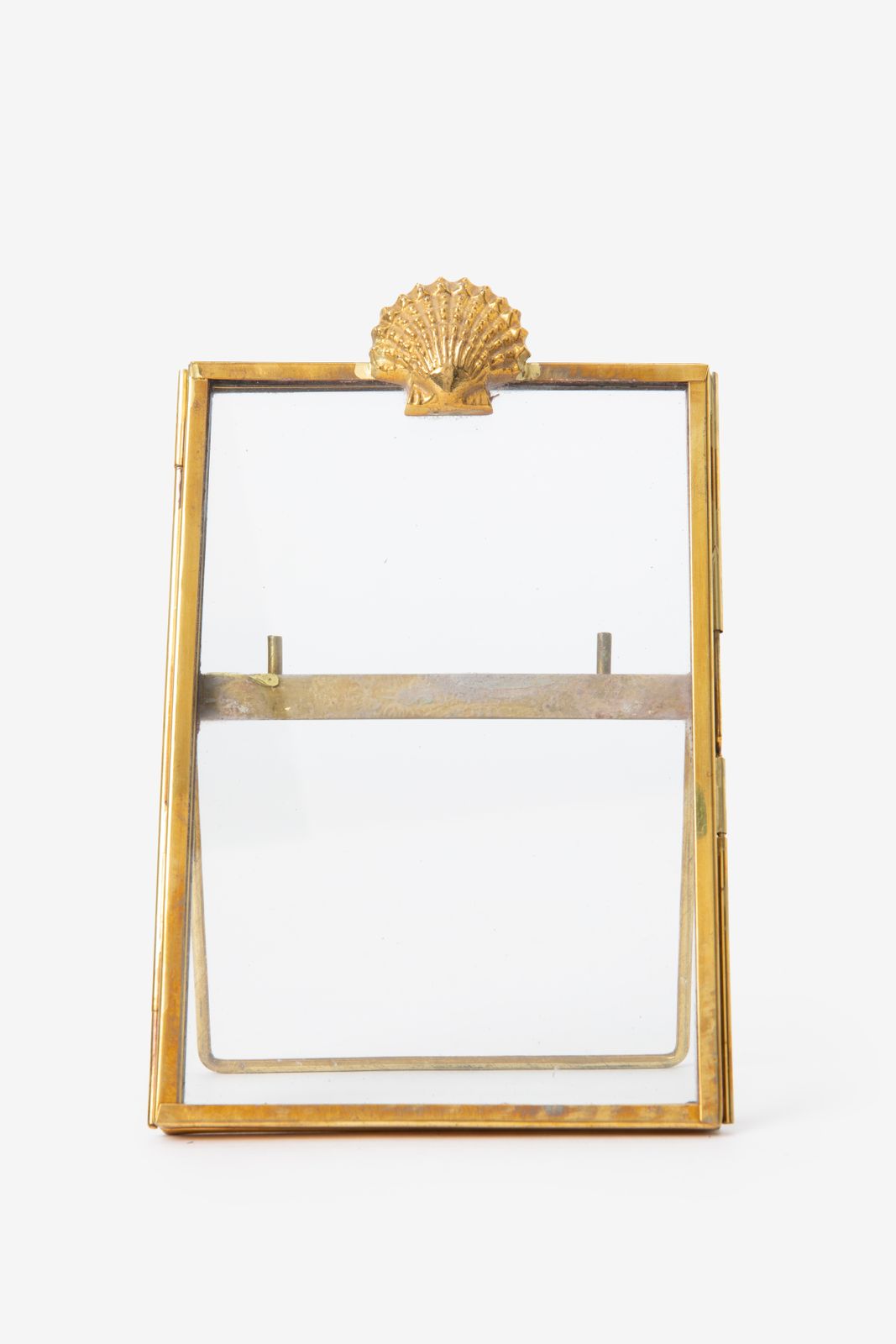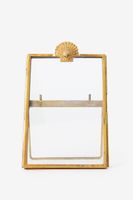 Cadre photo doré avec coquillage de Sissy-Boy. Le cadre photo est doté d'un support permettant de le poser bien droit. Le cadre photo mesure 11x16 cm et convient pour un format de photo de 10x15 cm. Composition : 90% verre, 10% laiton.
