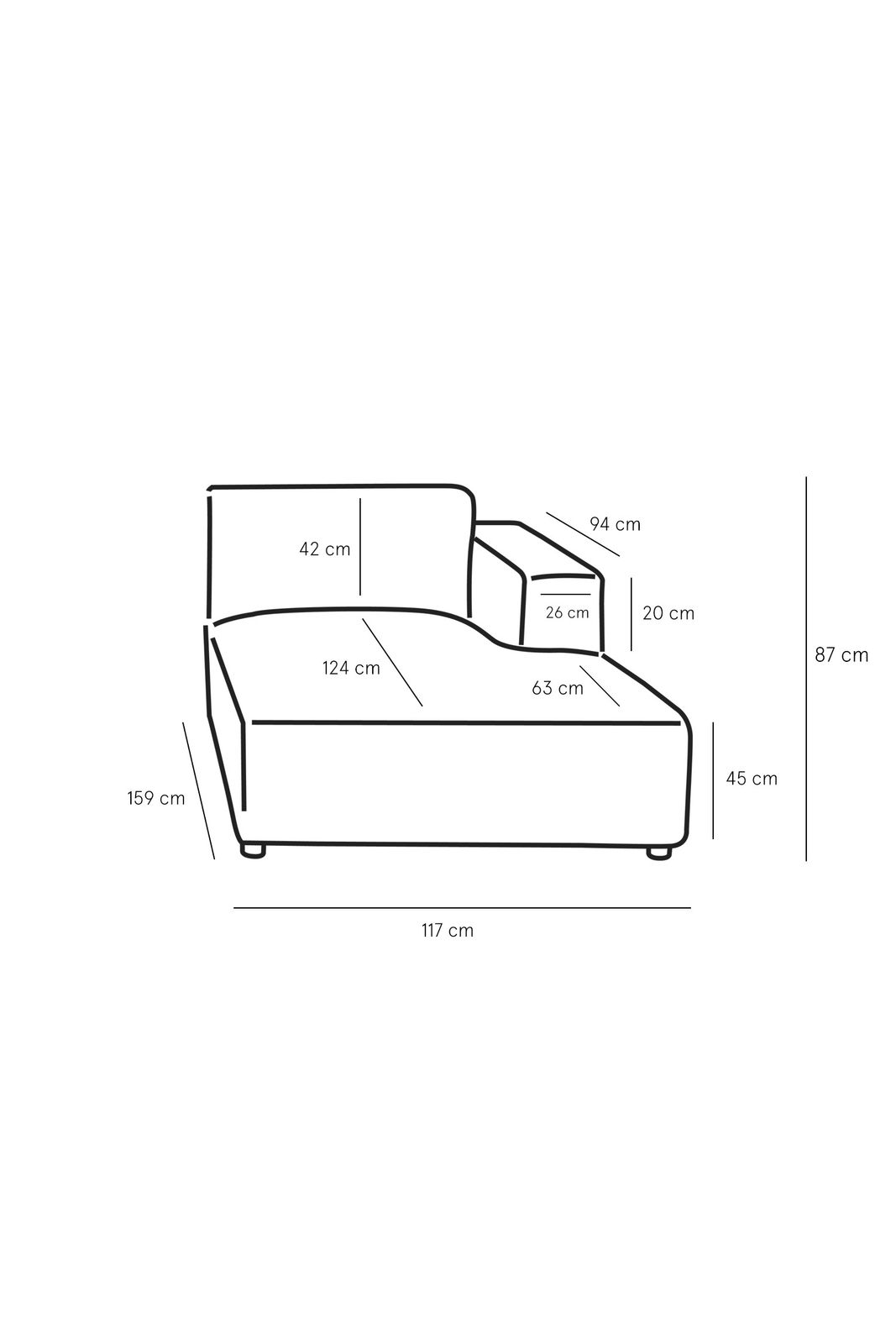 Méridienne avec accoudoir à droite de la série Earl de Sissy-Boy. La méridienne peut être utilisée comme élément du canapé modulable Earl en combinaison avec d'autres éléments individuels. Le canapé Earl se caractérise par un revêtement épuré, ce qui lui donne un aspect moderne. Un canapé classique pour chaque décoration d'intérieur intemporelle ! Avec son dossier haut et son assise ferme, le canapé est très confortable. L'élégant tissu velours apporte une touche luxueuse et raffinée au canapé très doux, ce qui contribue au confort d'assise. Attention : Lors de la livraison, la couleur du canapé peut différer de celle de l'échantillon de tissu et de la photo en ligne en raison du tissu velours. La couleur est Juke Sand 03. Le meuble a une largeur totale de 117 cm, une hauteur totale de 87 cm et une profondeur totale de 159 cm. L'assise a une profondeur de 124 cm et une hauteur de 45 cm. En savoir plus sur ce canapé ? Vous trouverez ici plus d'informations sur le canapé Earl.