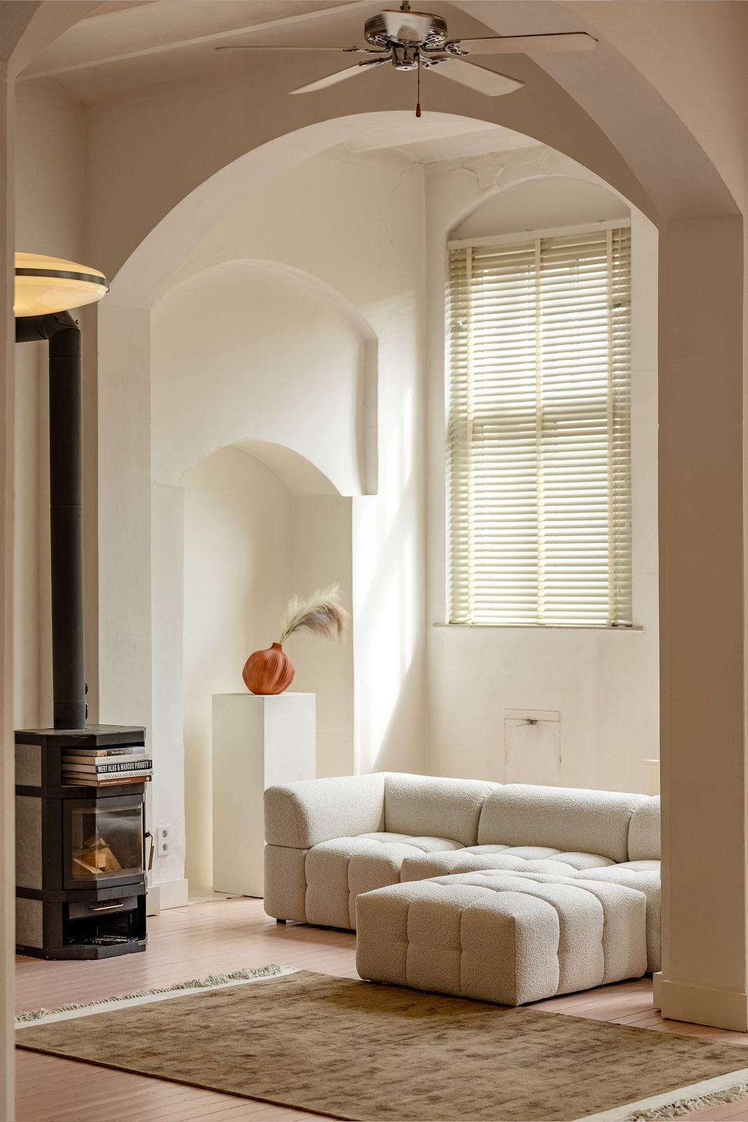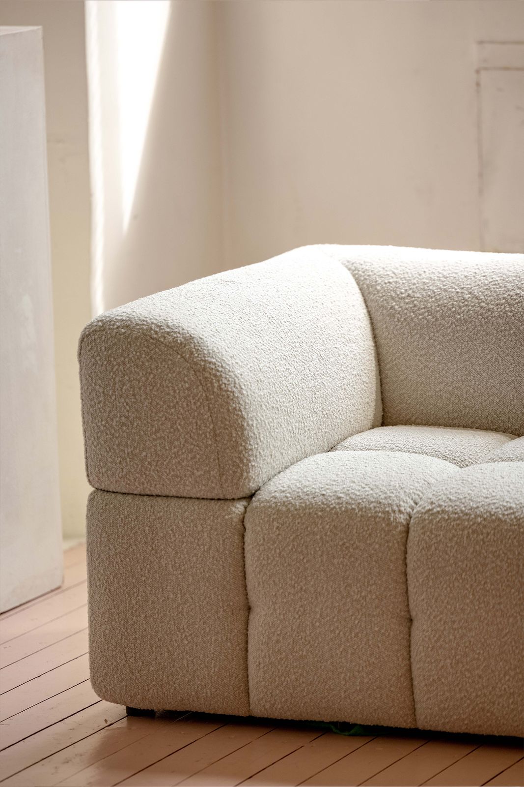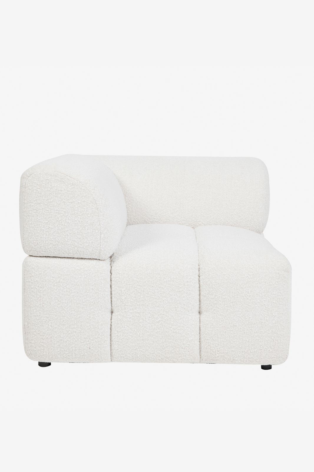 Angle de la série Marquis de Sissy-Boy. L'angle fait partie de la série de canapés modulables, qui comprend également un fauteuil et un repose-pieds. Cela vous permet donc de créer de nombreuses configurations avec les autres éléments de la série. L'angle peut être disposé séparément dans une pièce ou être utilisé pour compléter le canapé modulable de la série Marquis. Le fauteuil a des coussins matelassés pour un aspect douillet. Le revêtement est en polyester. La couleur de l'angle est Ascot pearl. Le meuble a une largeur totale de 93 cm, une hauteur totale de 74 cm et une profondeur totale de 93 cm. L'assise a une profondeur de 60 cm et une hauteur de 44 cm. En savoir plus sur ce canapé ? Vous trouverez ici plus d'informations sur le canapé Marquis.