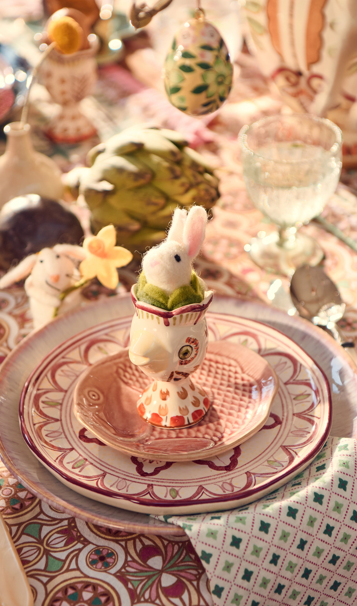 Choisissez des teintes colorées, des matériaux naturels et un mélange de formes et de textures pour créer une ambiance chaleureuse et personnelle. Associez votre vaisselle à un chemin de table, ajoutez des couverts dorés pour une touche chic et complétez le tout avec un vase rempli de fleurs printanières et de branches de Pâques. Découvrez tous les accessoires de table, la vaisselle et les décorations printanières dans la collection de Pâques Sissy-Boy.