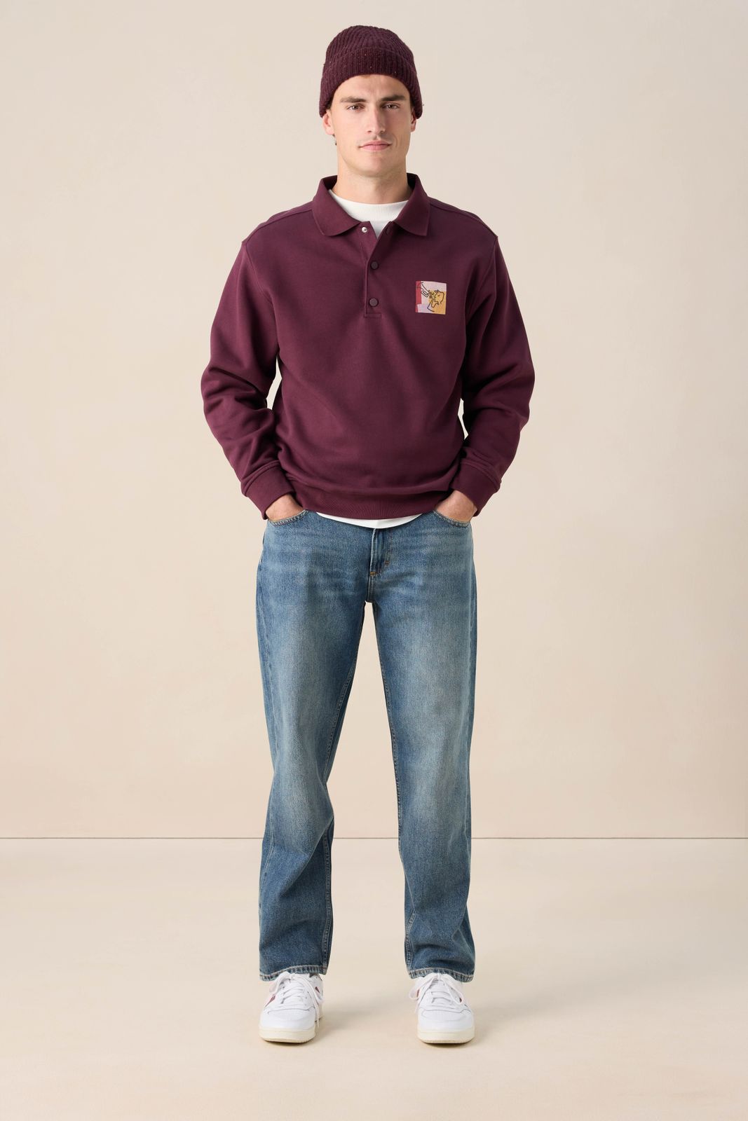 Sweat violet foncé de Sissy-Boy. Le sweat a une coupe droite, des manches longues, un col avec boutons et une illustration dans le dos. Composition : 100% coton.