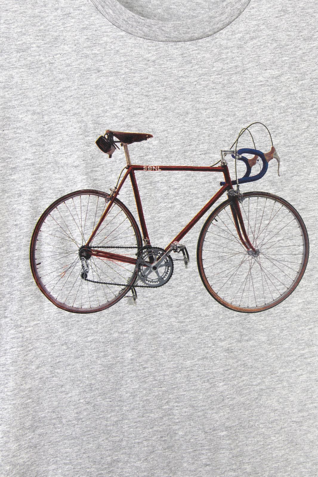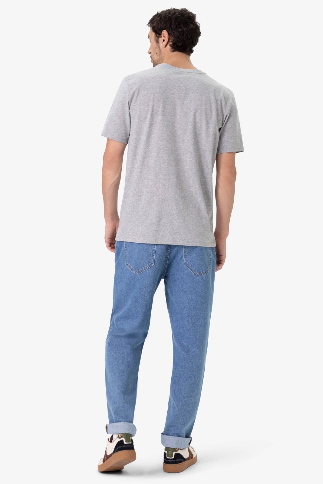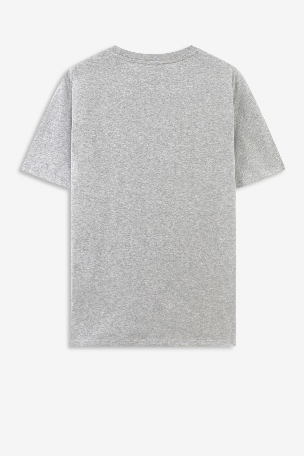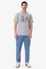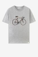 T-shirt gris foncé coupe régulière avec des manches courtes, un col rond et une illustration sur le devant. Composition : 100% coton.