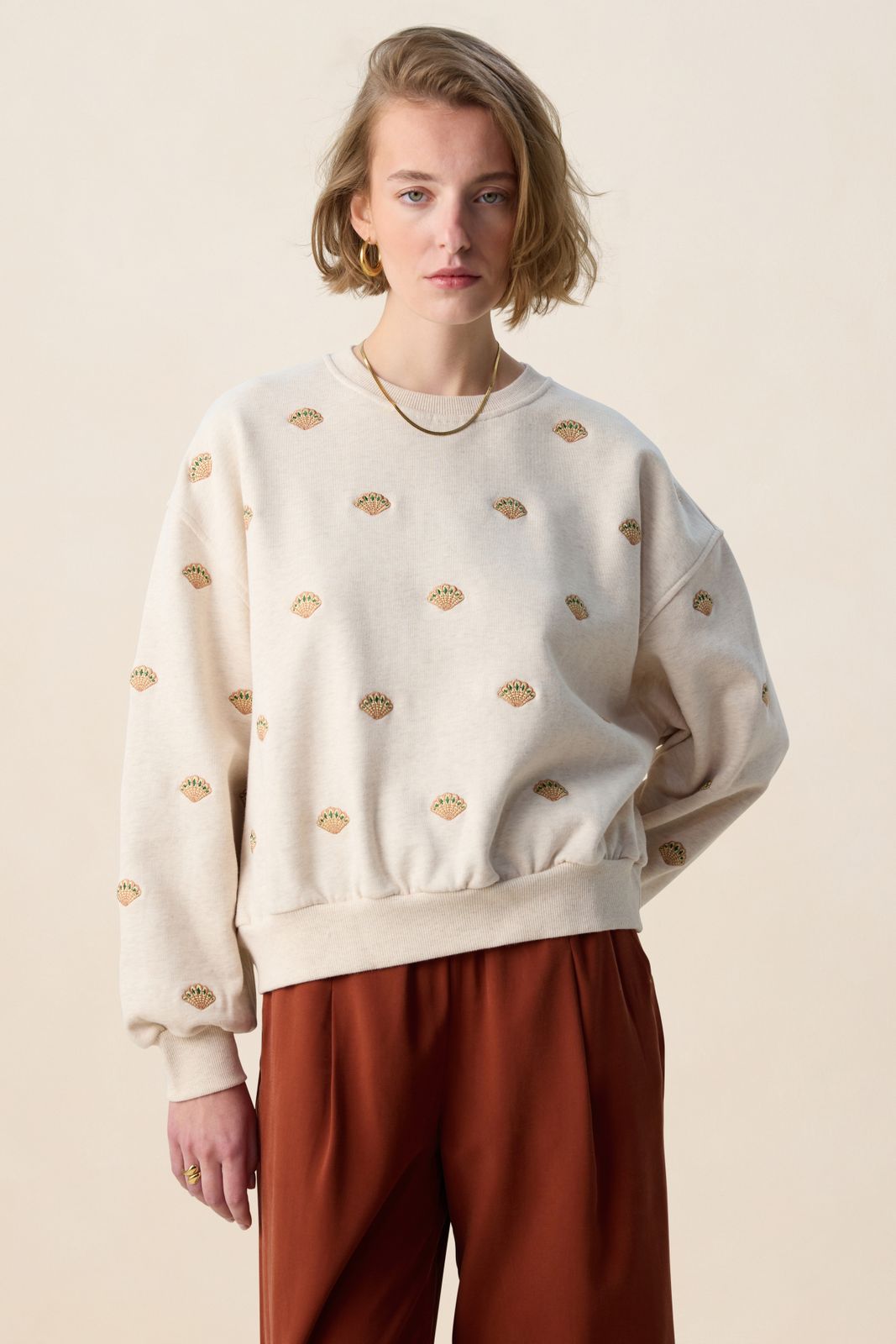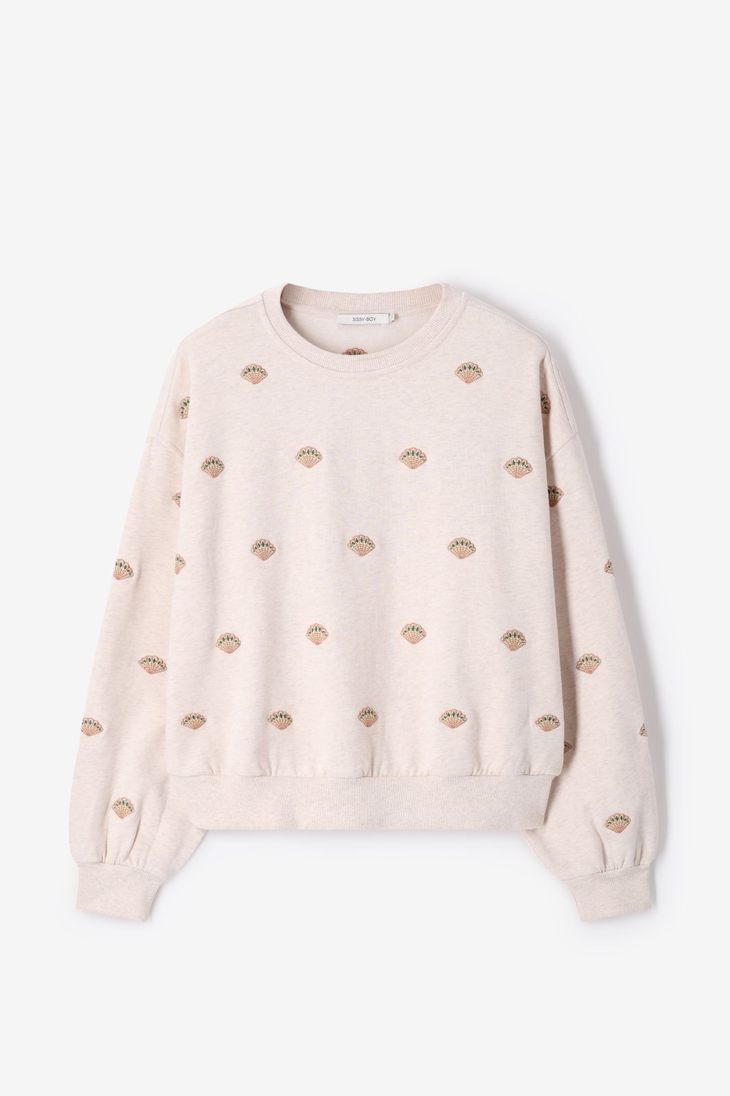 Beige sweater met embroidery van Sissy-Boy. De sweater heeft lange mouwen, een ronde halslijn en een oversized fit. Verder heeft de sweater een beige kleur met all-over schelpen embroidery details. Materiaal: 100% katoen.