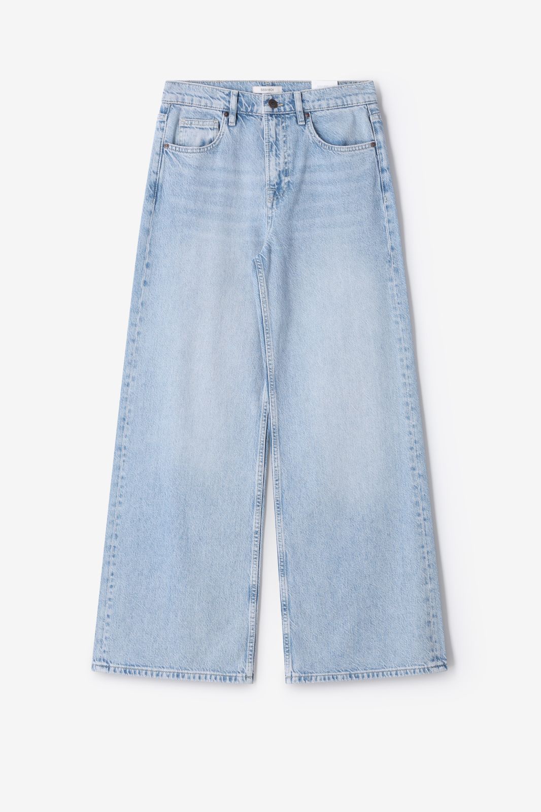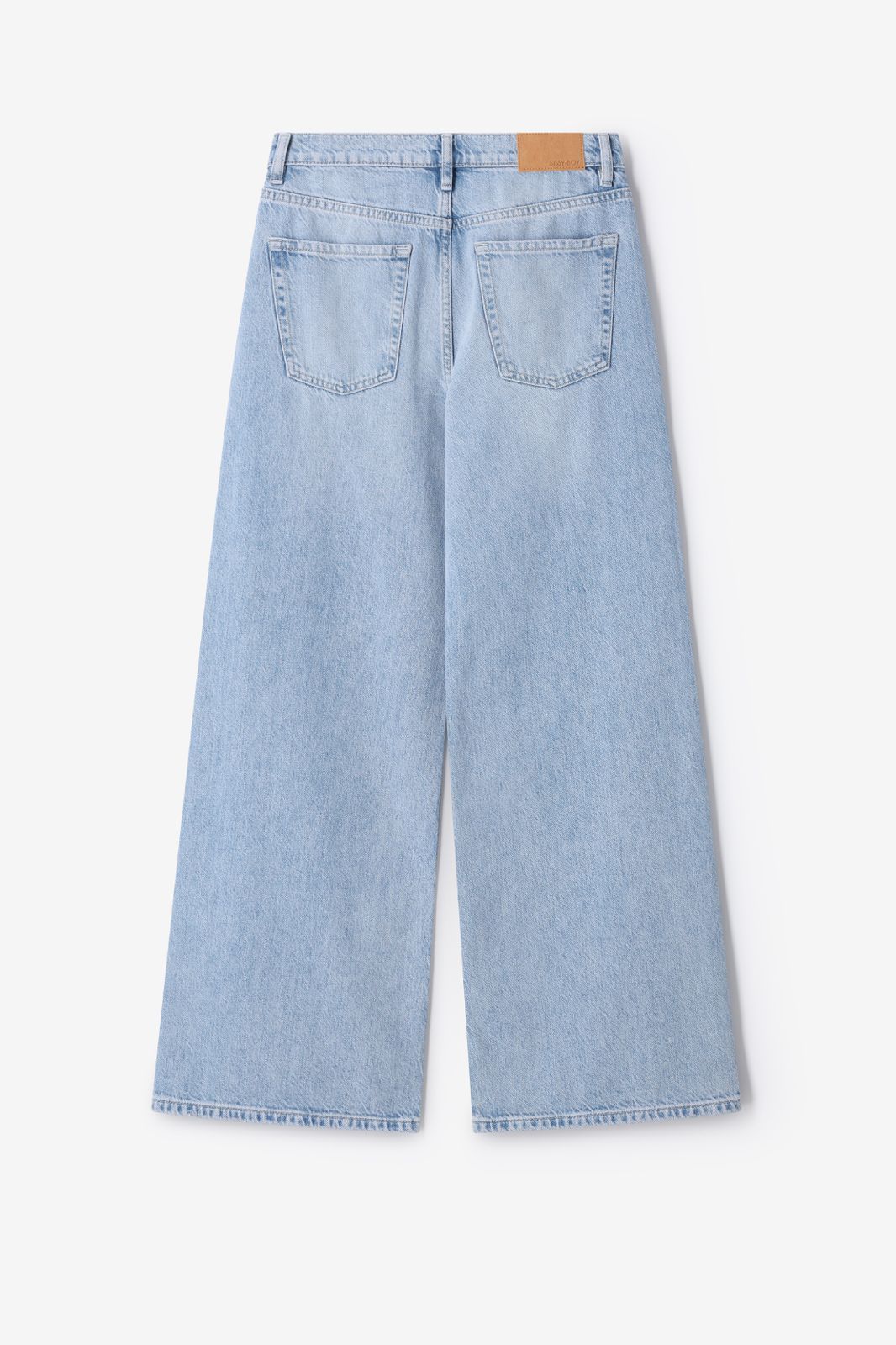 Blauwe mid waist wide leg jeans van Sissy-Boy. De jeans heeft een middelhoge taille, een 5-pocket model, wijd uitlopende broekspijpen en een knoop- en ritssluiting. Verder heeft de jeans een lichtblauwe blauwe wassing. Materiaal: 82% katoen, 18% lyocell.