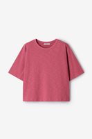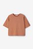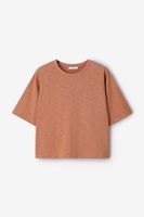 Bruin boxy T-shirt van Sissy-Boy. Het T-shirt heeft een ronde halslijn, korte mouwen en een boxy wijde fit. Materiaal: 64% katoen, 36% tencel.