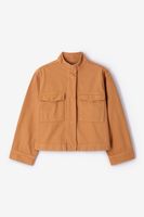 Bruin jack met opgestikte zakken van Sissy-Boy. Het jack heeft lange mouwen, een hoge hals, een kort model en een knoopsluiting. Verder heeft het jack een bruine kleur met twee borstzakken. Materiaal: 100% katoen.