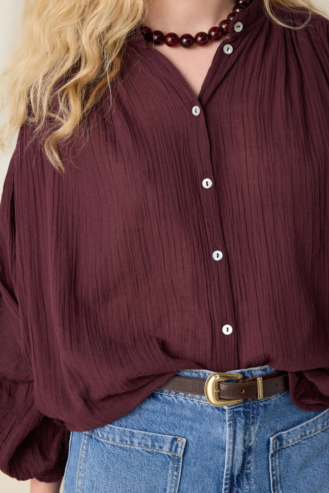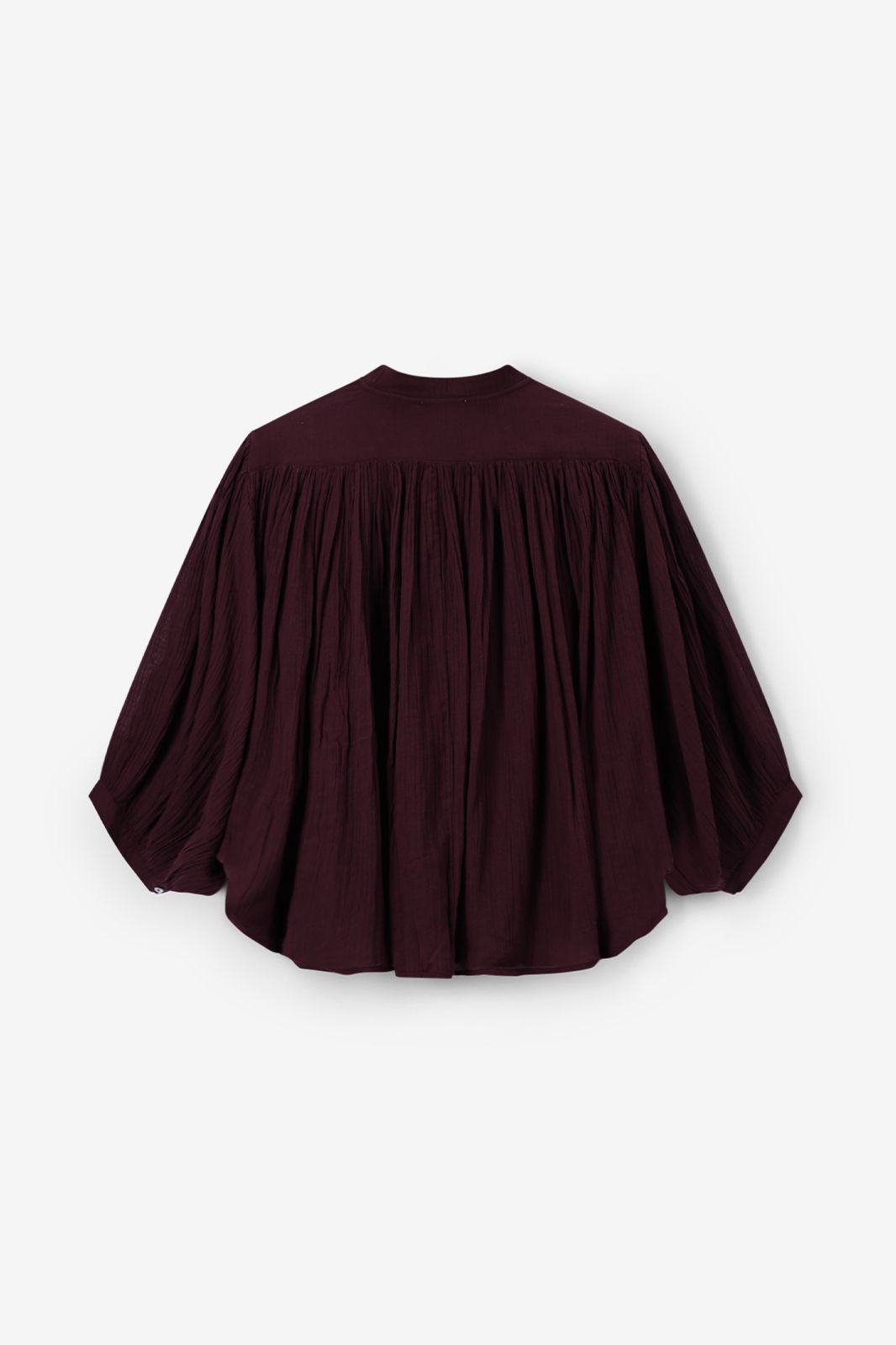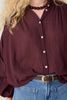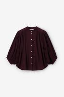 Donkerbruine oversized blouse van Sissy-Boy. De blouse heeft lange mouwen, een hoge halslijn, een knoopsluiting en een oversized fit. Daarnaast heeft het een bruine kleur, wijde mouwen en plooien aan de voorzijde. Het model heeft een lengte van 1,71 m en draagt maat S. Materiaal: 100% katoen.