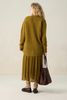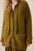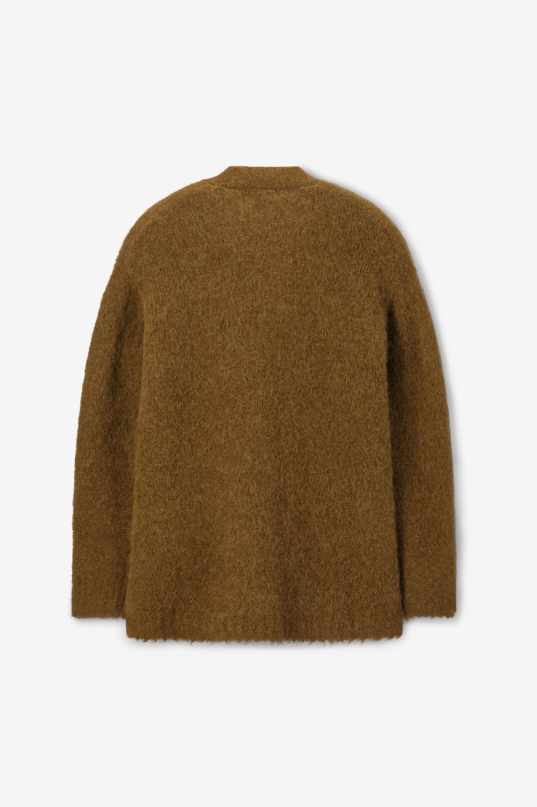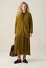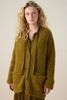 Donkergroen vest met V-hals van Sissy-Boy. Het vest heeft lange mouwen, een V-halslijn, een knoopsluiting en ribboorden bij de hals, mouwen en onderzijde. Daarnaast heeft het een donkergroene kleur met opgestikte zakken aan de voorzijde. Het model heeft een lengte van 1,71 m en draagt maat S. Materiaal: 78% alpaca, 19% polyamide, 3% elastaan.