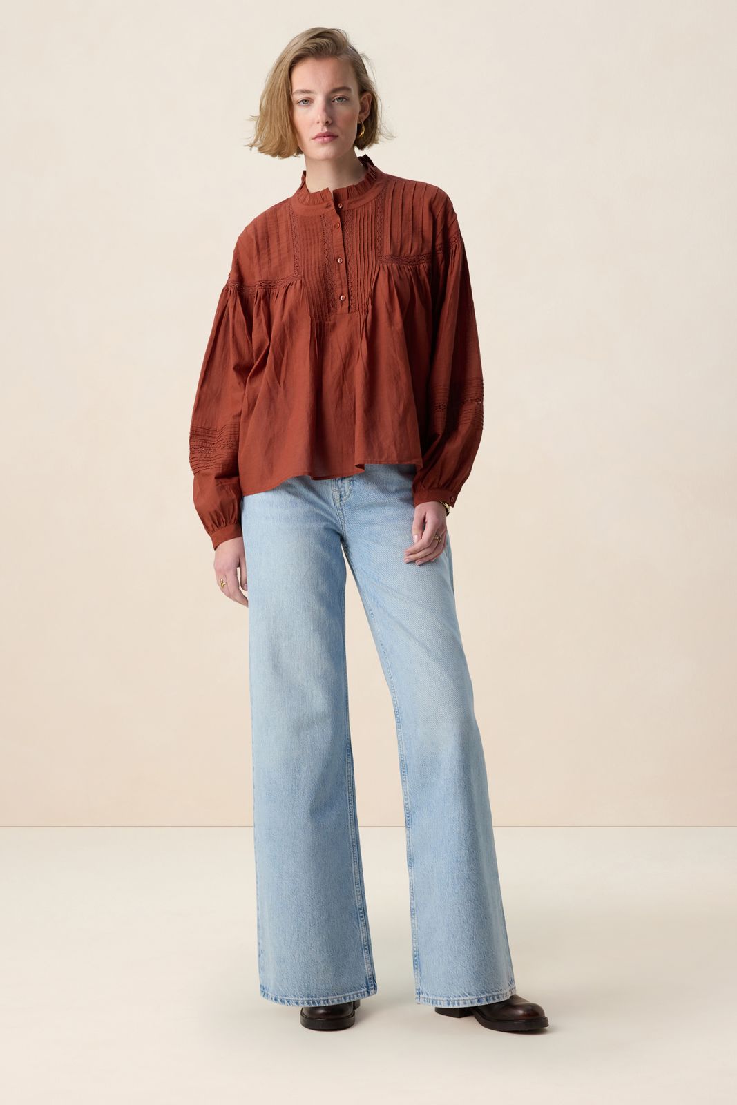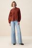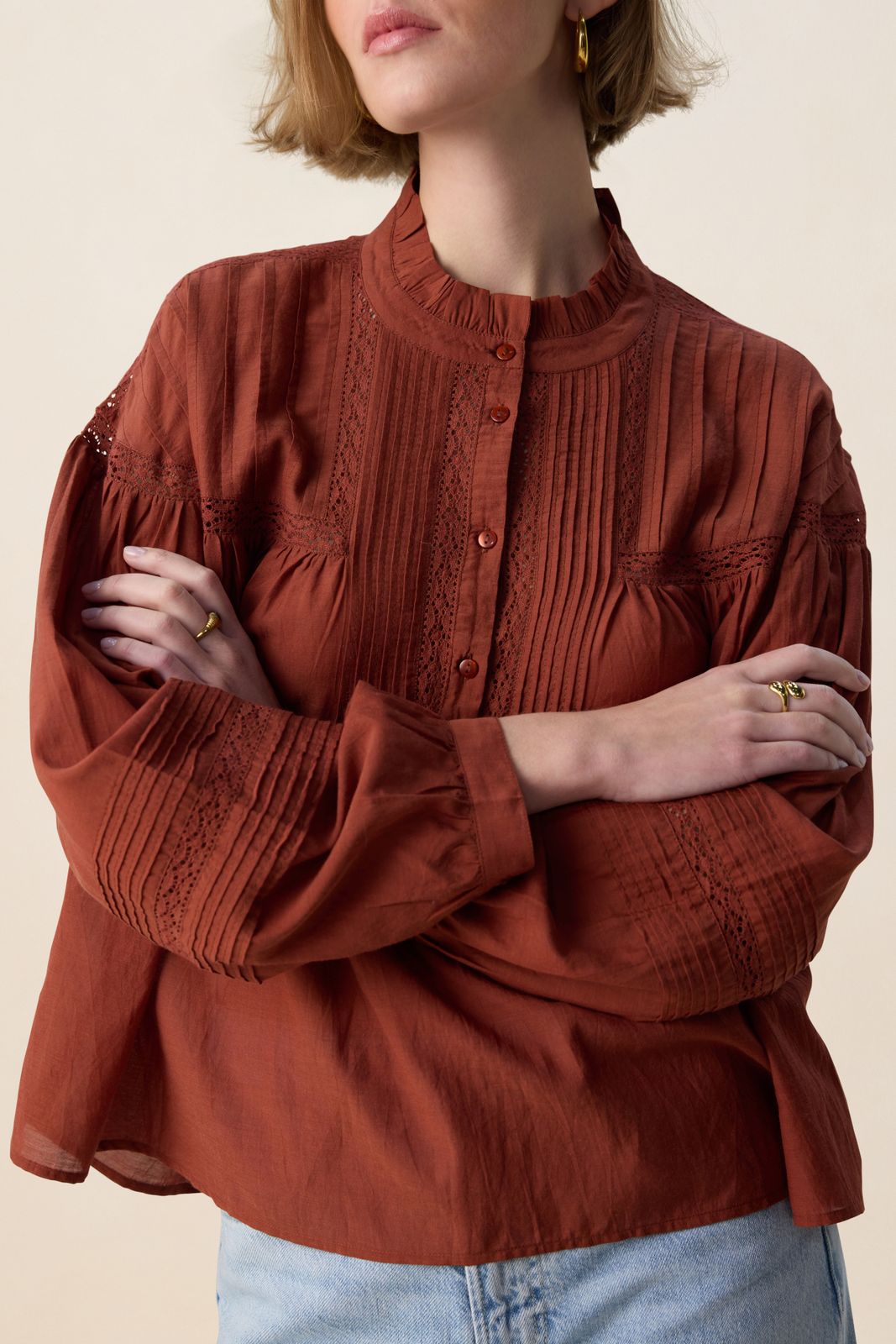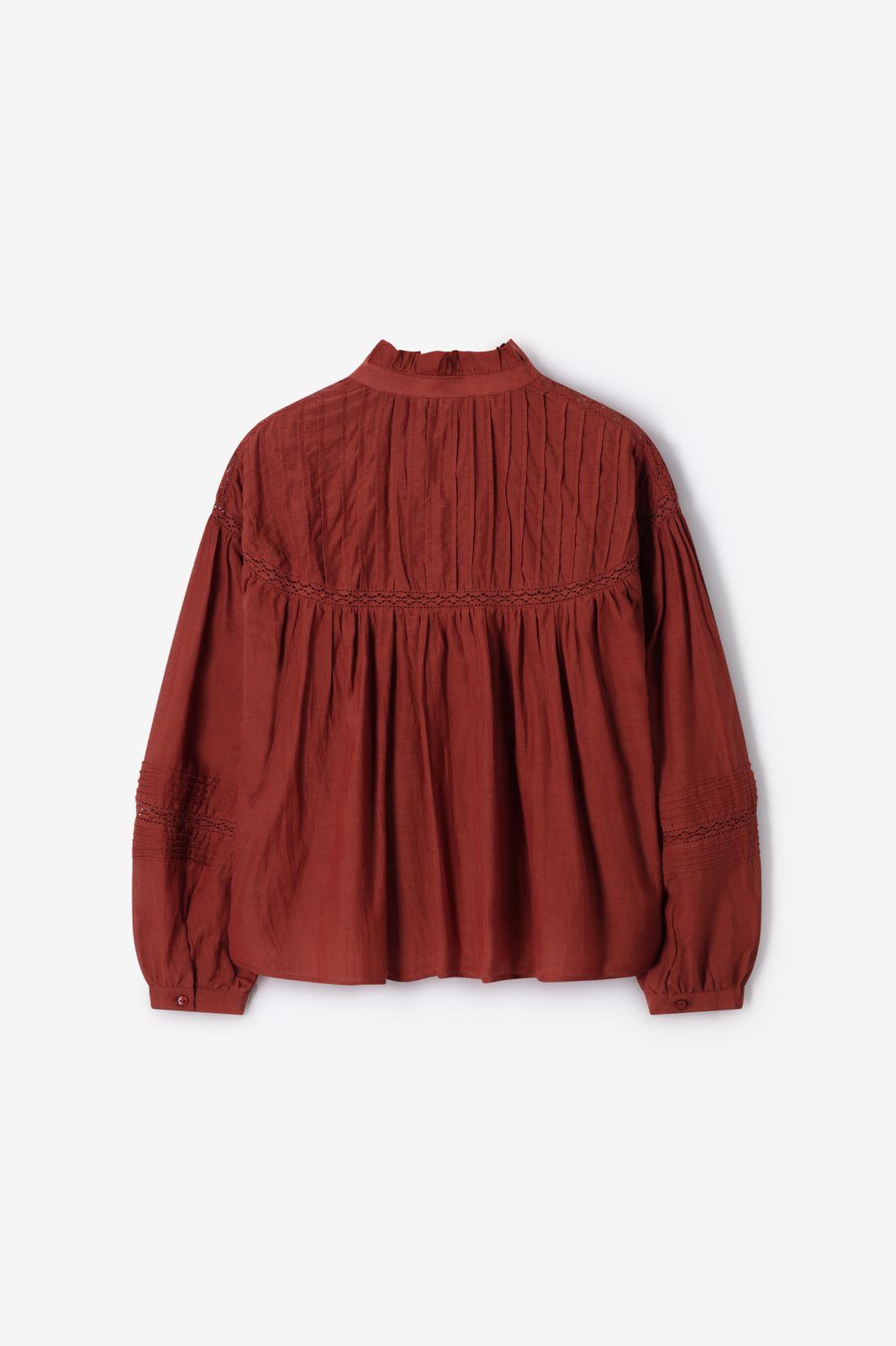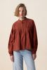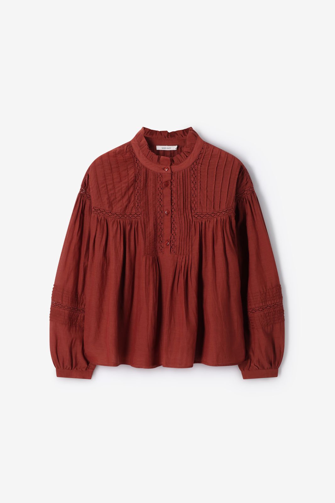 Donkerrode blouse met embroidery van Sissy-Boy. De blouse heeft lange pofmouwen, een ronde hals, een knoopsluiting en een relaxed fit. Verder heeft de blouse een donkerrode kleur, ruffle details rond de hals en geborduurde details op de voorzijde en mouwen. Materiaal: 60% viscose, 40% katoen.