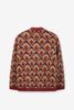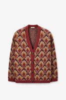 Donkerrood jacquard vest met print van Sissy-Boy. Het vest heeft lange mouwen, een V-halslijn, een knoopsluiting en een relaxed fit. Daarnaast is het rood van kleur met een all-over ingeweven jacquard schelpen dessin. Het model heeft een lengte van 1,71 m en draagt maat S. Materiaal: 42% acryl, 20% polyamide, 16% wol, 10% polyester, 6% alpaca, 3% elastaan, 3% metaalvezel.