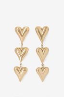 Gold plated hartjes oorbellen van Sissy-Boy. De lange hartjes oorbellen hebben een vlindersluiting en zijn gemaakt van staal. Onderhoud sieraden Sissy-Boy: Vermijd contact met cosmetica (parfum, haarlak, make-up, nagellakremover, lichaamsolie, zonnebrandolie, handgel en deodorant). Draag geen sieraden tijdens het douchen, baden of zwemmen. Met name chloor kan de sieraden permanent beschadigen of verkleuren.