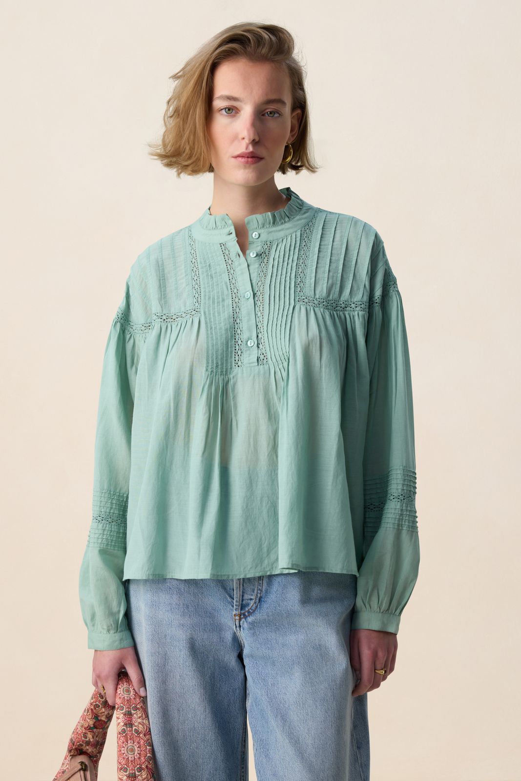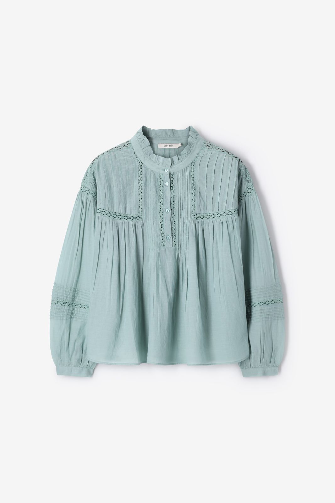 Groene blouse met embroidery van Sissy-Boy. De blouse heeft lange pofmouwen, een ronde hals, een knoopsluiting en een relaxed fit. Verder heeft de blouse een groene kleur, ruffle details rond de halslijn en geborduurde details op de voorzijde en mouwen. Materiaal: 60% viscose, 40% katoen.