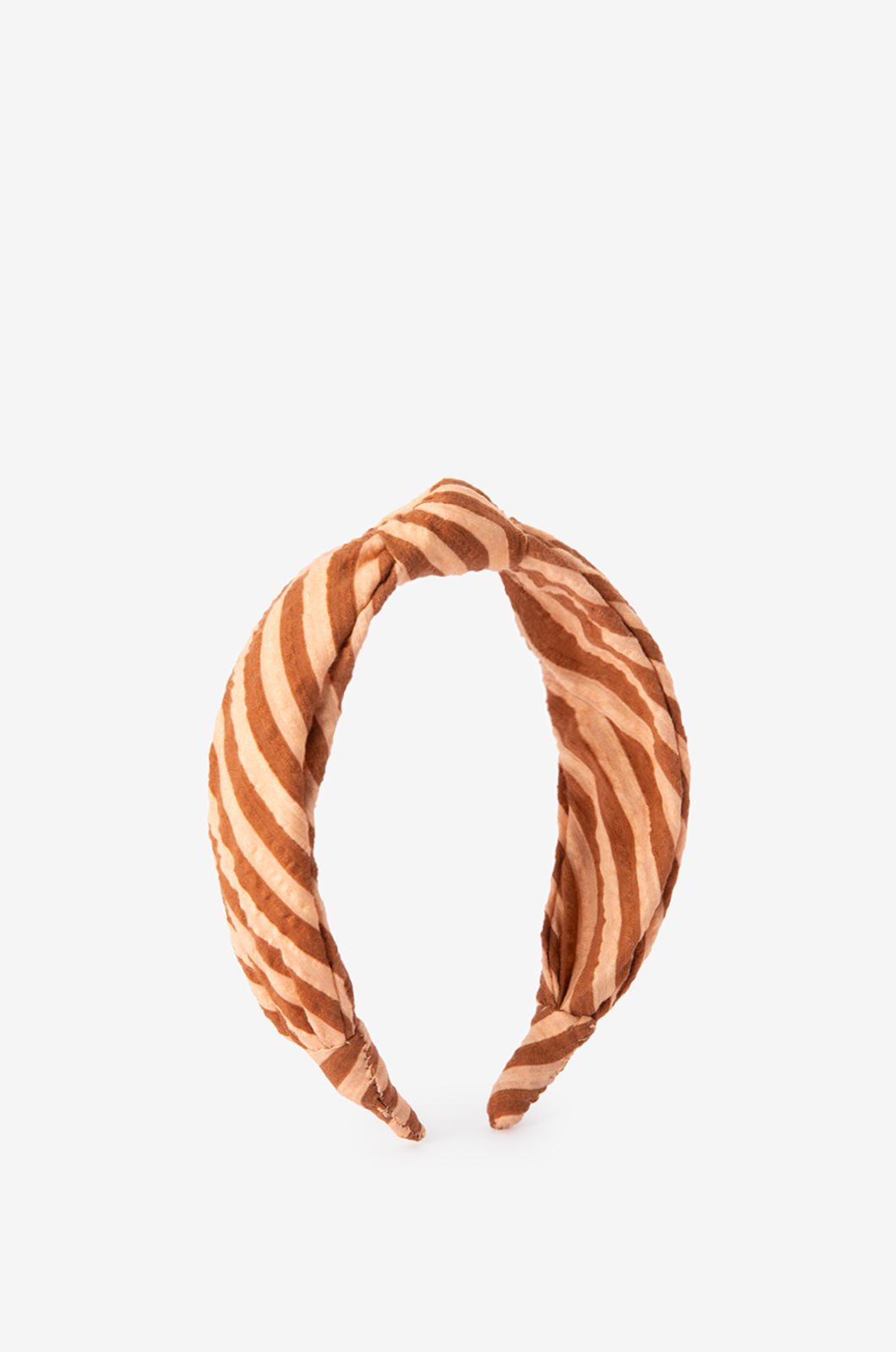 Oranje gestreepte seersucker haarband van Sissy-Boy. De haarband heeft een knoopdetail en is gemaakt van een seersucker kwaliteit. Verder heeft het een oranje kleur met een all-over strepen design. Materiaal: 100% katoen.