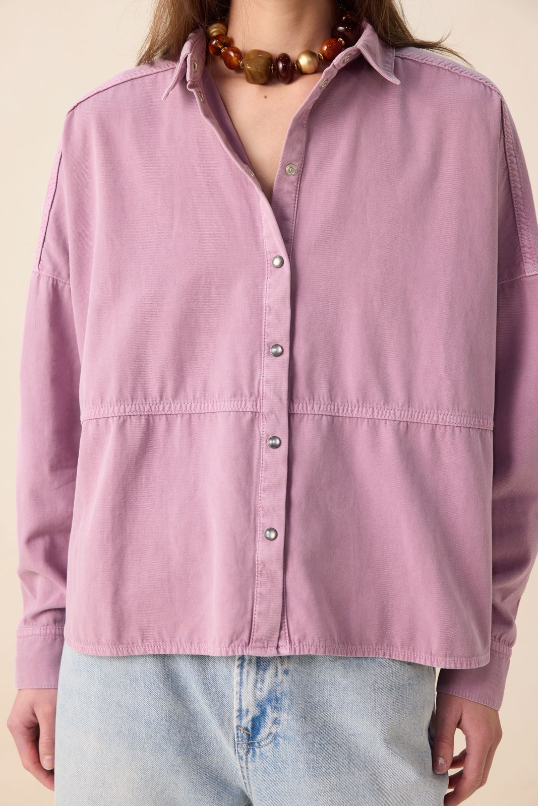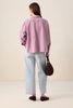 Paarse blouse van Sissy-Boy. De blouse heeft lange pofmouwen, een drukknoopsluiting, een kraag, verlaagde schouders en een relaxed fit. Verder heeft de blouse een relaxed fit, wijd uitvallende onderzijde en lichtpaarse stiksels als detail. Materiaal: 100% katoen.