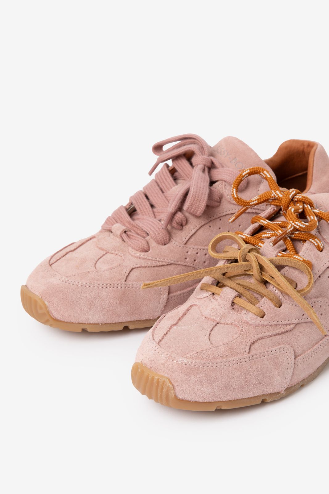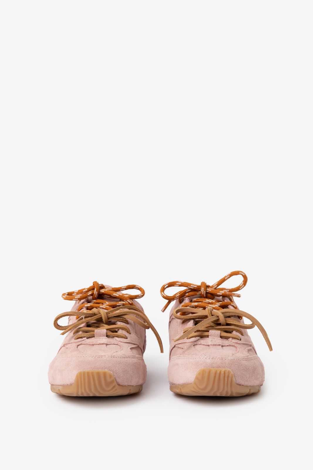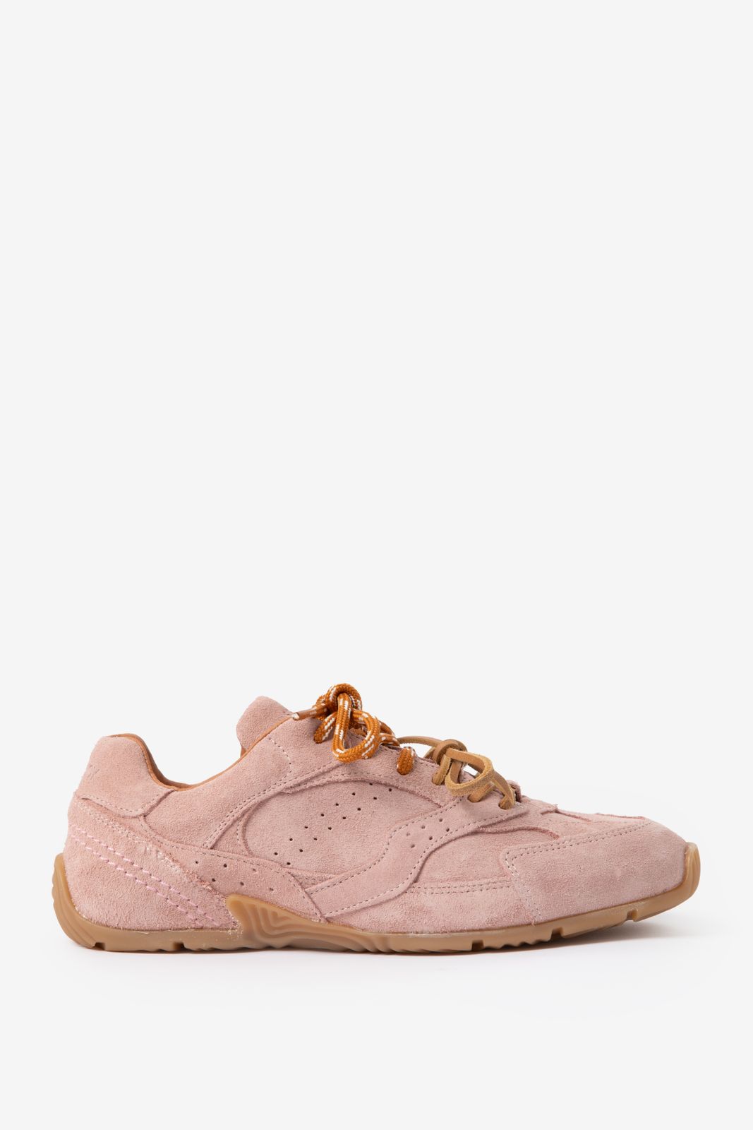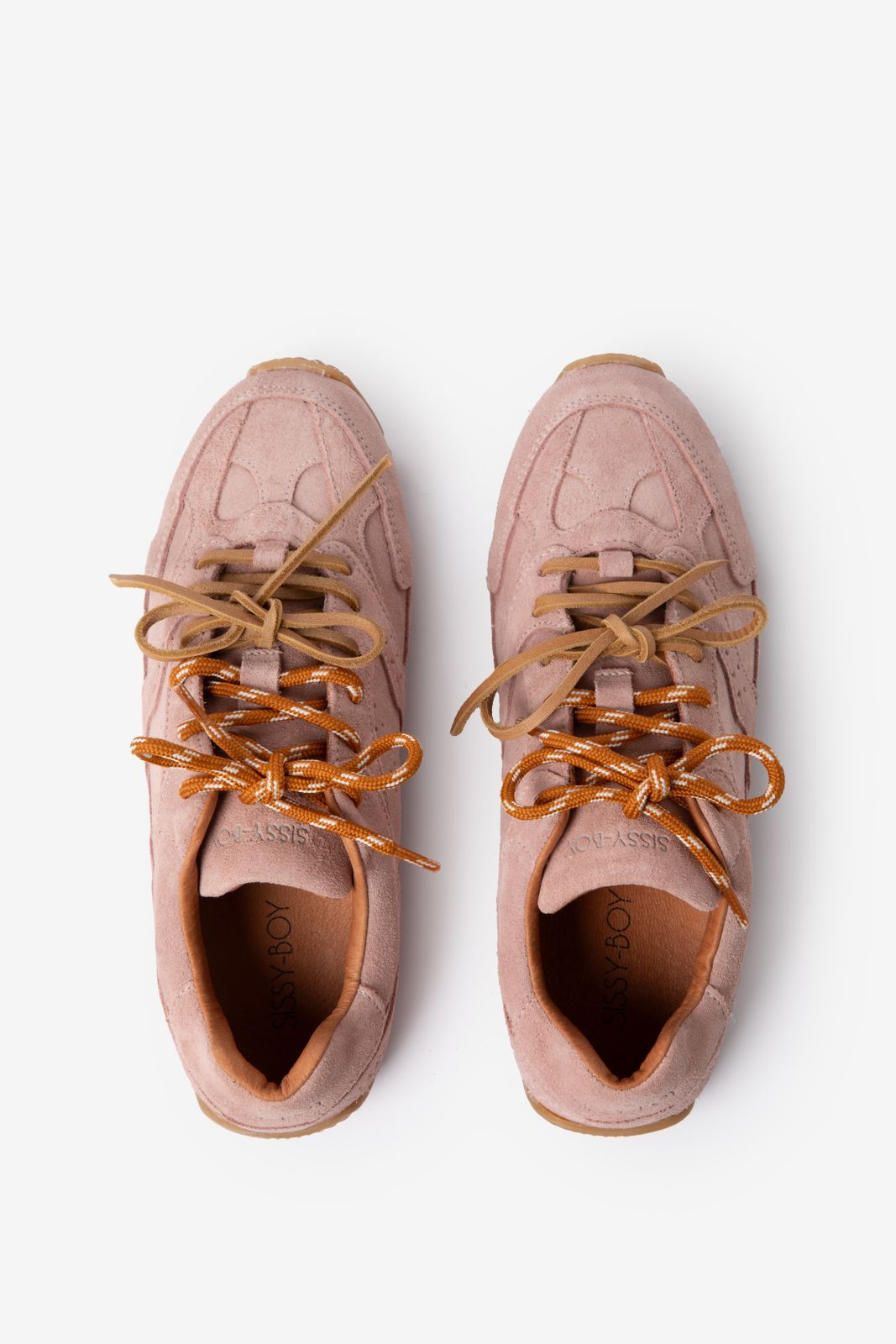 Roze suède sneakers van Sissy-Boy. De sneakers hebben een platte lage zool, ronde neus en dubbele vetersluiting. Verder hebben de sneakers een roze kleur en een bruine zool. Materiaal: 100% suède.