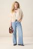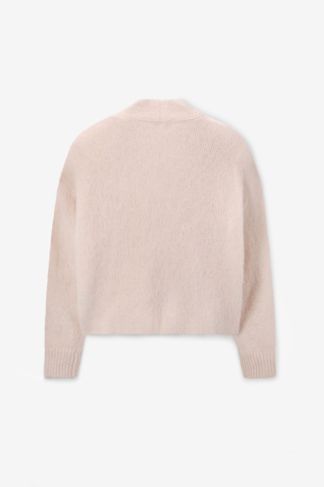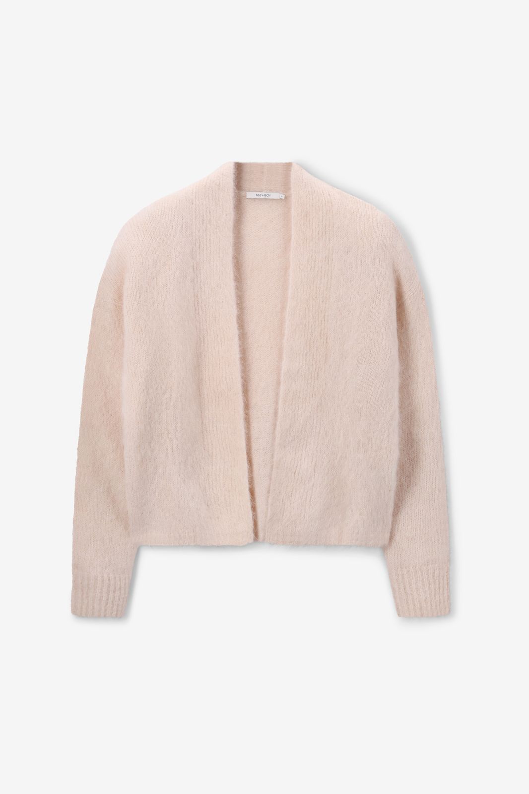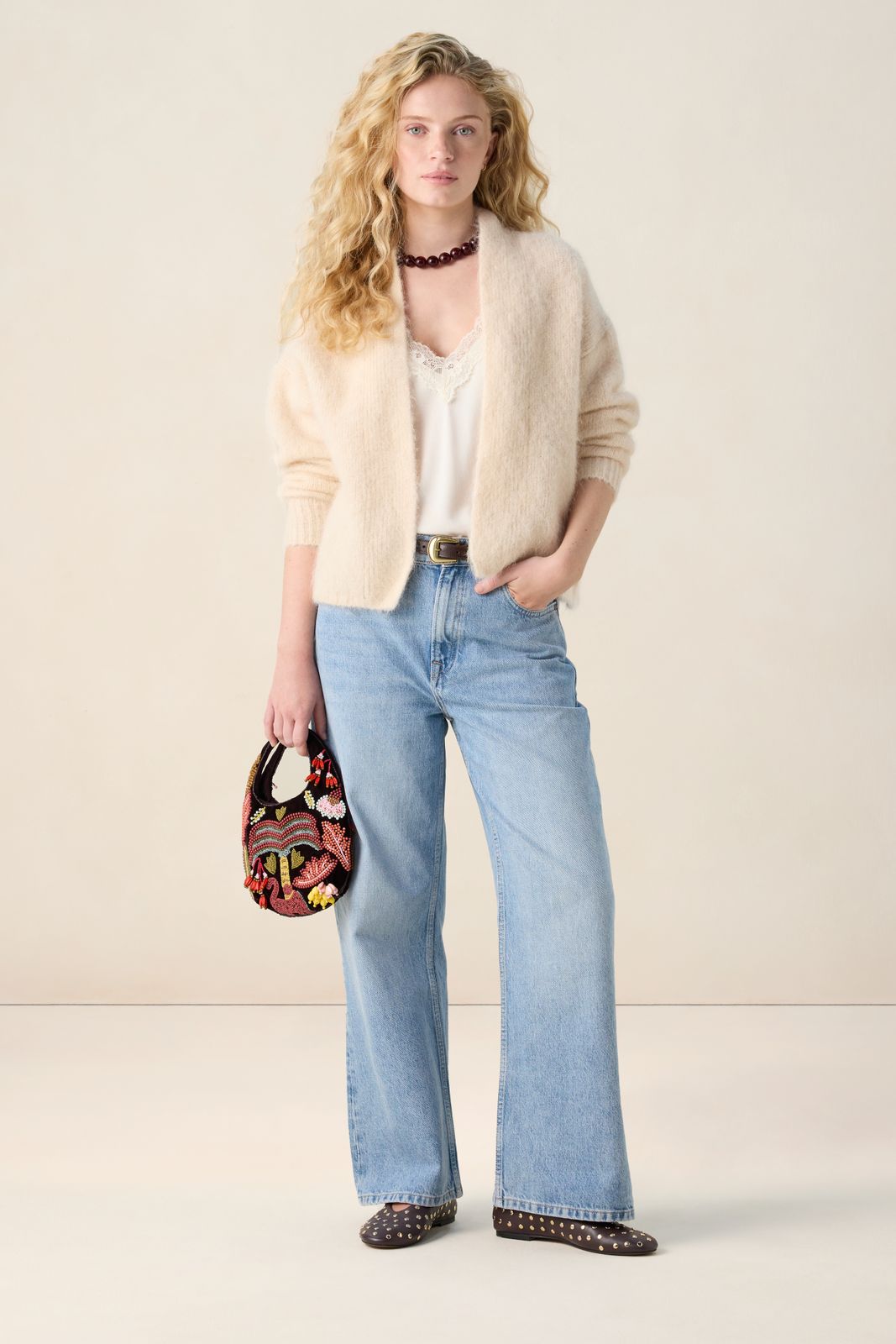 Wit gebreid vest van Sissy-Boy. Het vest heeft lange mouwen, ribboorden, verlaagde schouders en een relaxed fit. Verder is het vest gemaakt van een witte wollen kwaliteit en heeft het geen sluiting. Het model heeft een lengte van 1,71 m en draagt maat S. Materiaal: 78% alpaca, 19% polyamide, 3% elastaan.