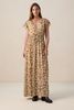 Witte maxi jurk met print van Sissy-Boy. De jurk heeft een V-halslijn, een maxi-lengte, korte mouwen en een elastische band in de taille. Verder heeft de jurk een witte kleur met een all-over bloemen print en geplooide details. Het model heeft een lengte van 1,72 m en draagt maat S. Materiaal: 98% viscose, 2% metaalvezel.