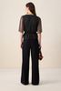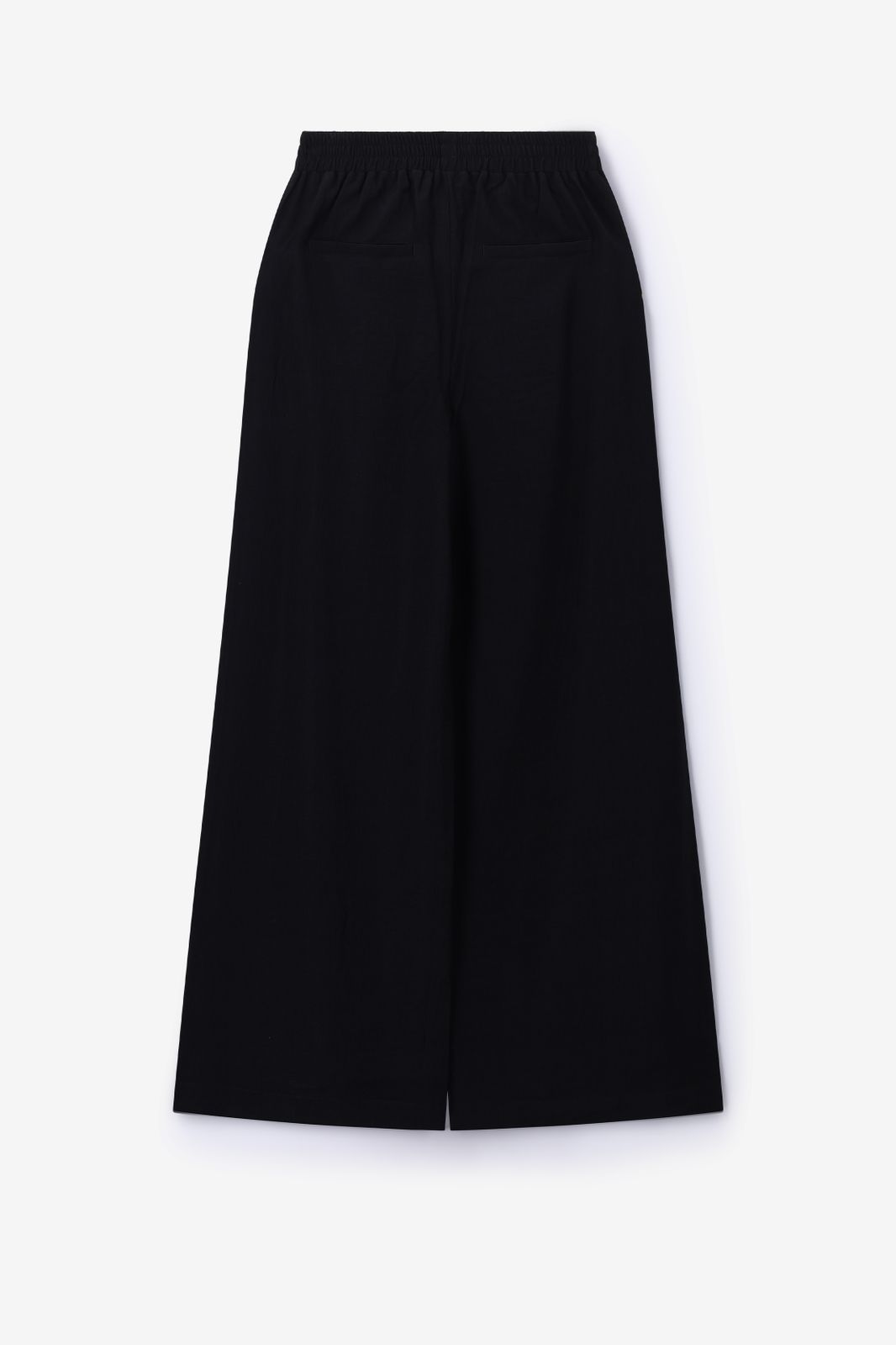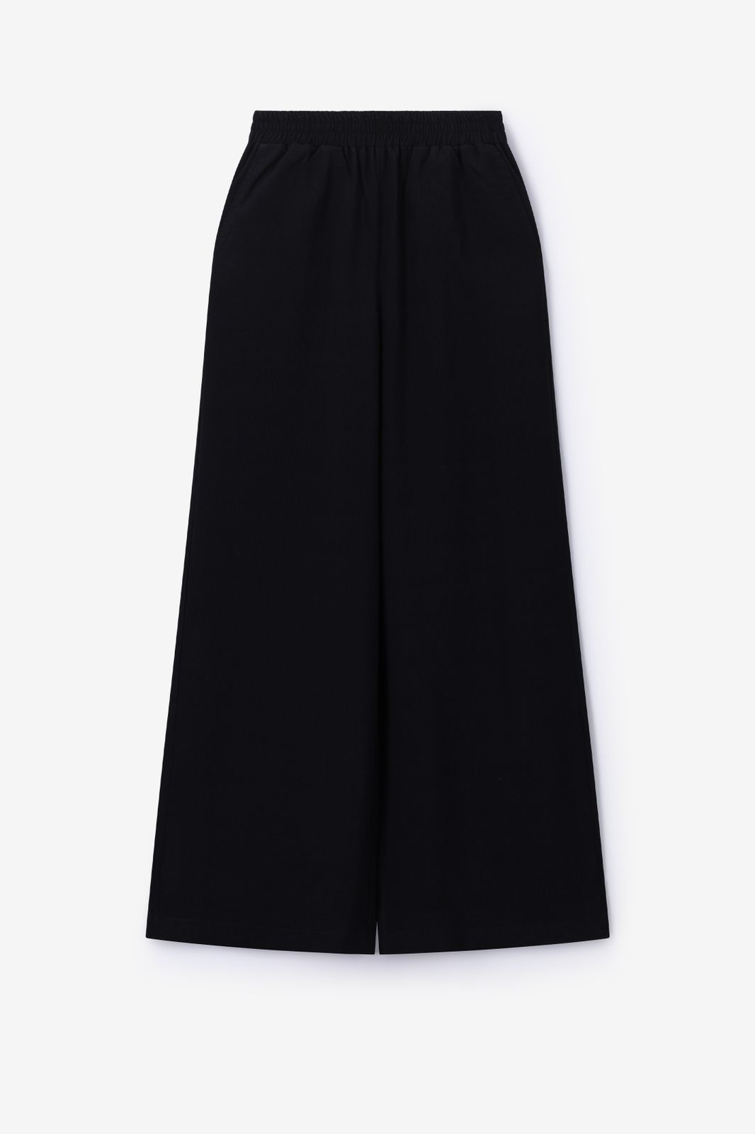 Zwarte high waist wide leg broek van Sissy-Boy. De broek heeft een hoge elastische tailleband, twee steekzakken aan de voorzijde, twee paspelzakken aan de achterzijde en een wijd uitlopende fit. Het model heeft een lengte van 1,77 en draagt maat S. Materiaal: 88% viscose, 12% polyamide.