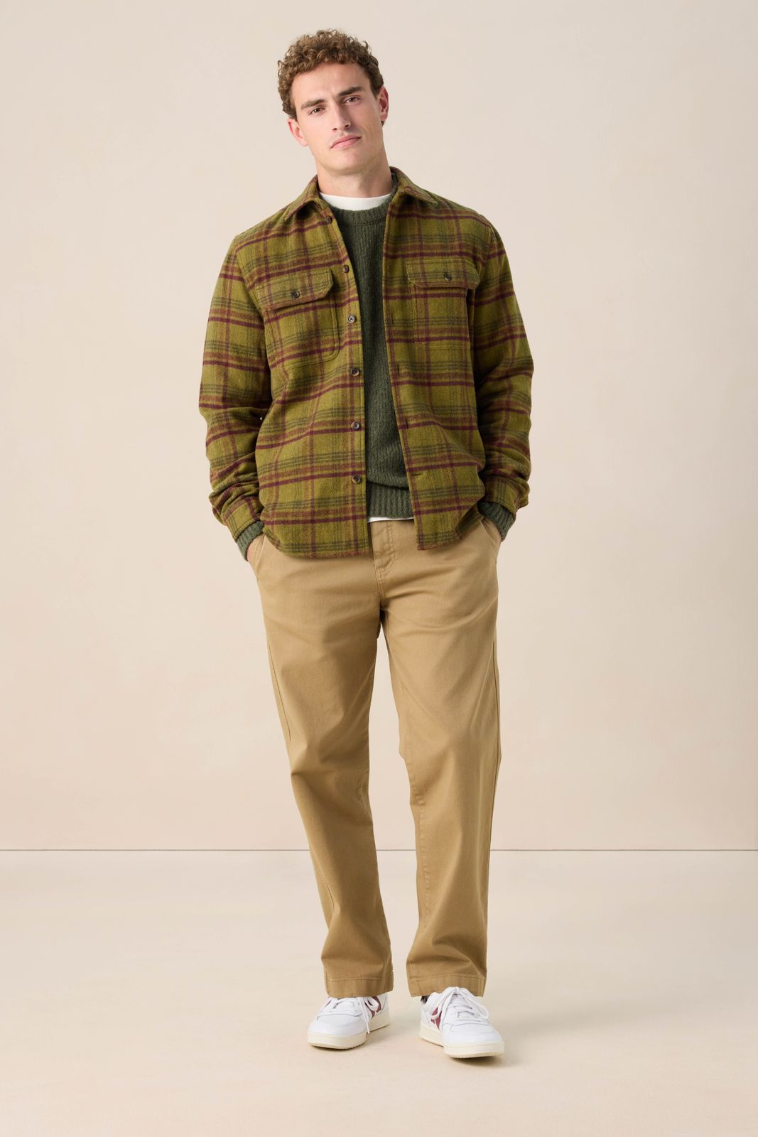 Donkergroen geruit overhemd van Sissy-Boy. Het overhemd heeft lange mouwen, knoopsluiting, een kraag, opgestikte borstvakken en een regular fit. Verder heeft het overhemd een all-over ruiten print met bruine details. Het model heeft een lengte van 1,87 m en draagt maat M. Materiaal: 44% wol, 31% polyester, 19% acryl, 6% polyamide.