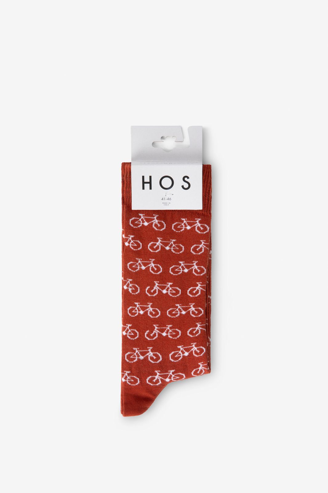 Donkerrode sokken met print van het merk Heroes on Socks. De sokken hebben een donkerrode kleur met een all-over fietsen print in een witte kleur. Materiaal: 100% katoen.