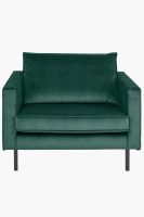 Comfortabele velvet loveseat uit de Amsterdam serie. De fauteuil heeft dankzij het zachte, velvet materiaal een luxe uitstraling en een comfortabele zitervaring. Let op: Bij de levering kan de stoel in kleur afwijken van de stofstaal en het online beeldmateriaal door de velvet stofkwaliteit. De stoel is 105 cm breed, 85 cm hoog en 86 cm diep. De pootjes zijn circa 20 cm hoog en de zitdiepte is circa 57 cm. De loveseat heeft een zig zag voering en de poten kunnen gedemonteerd worden. Kleur: Juke Dark green hunter 156. Meer weten over deze bank? Lees hier alle informatie over de Amsterdam bank.