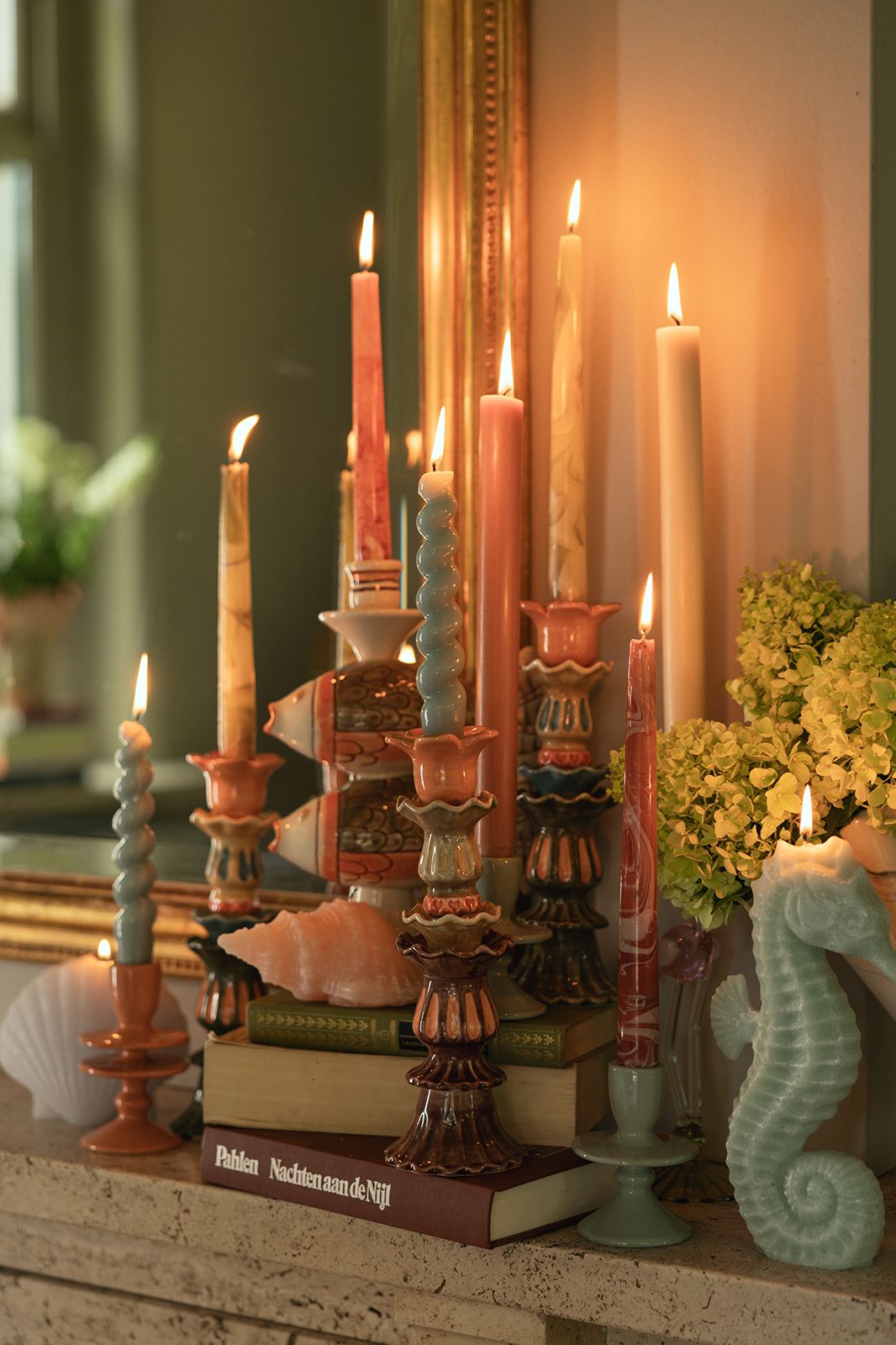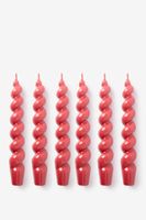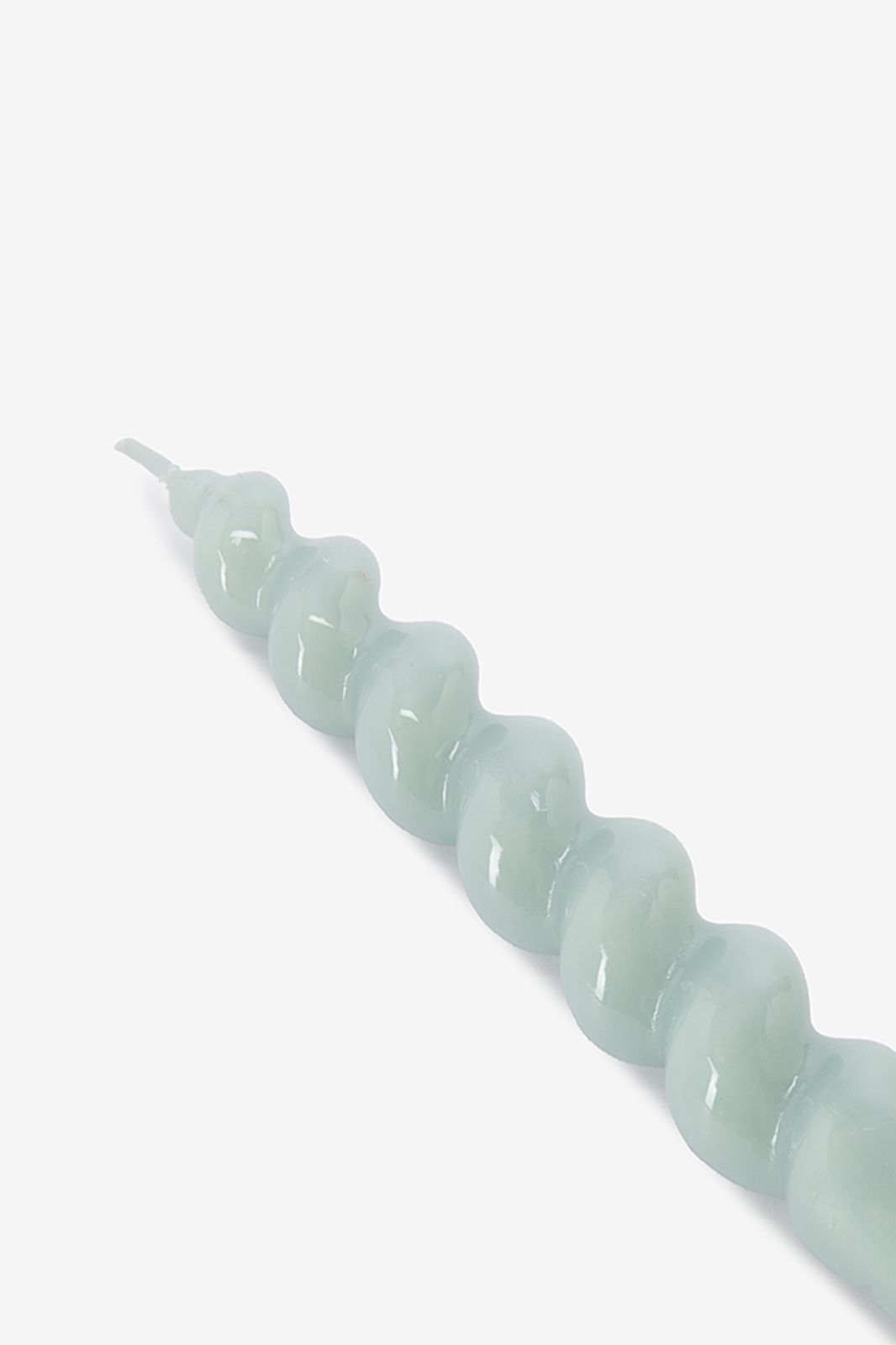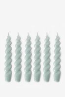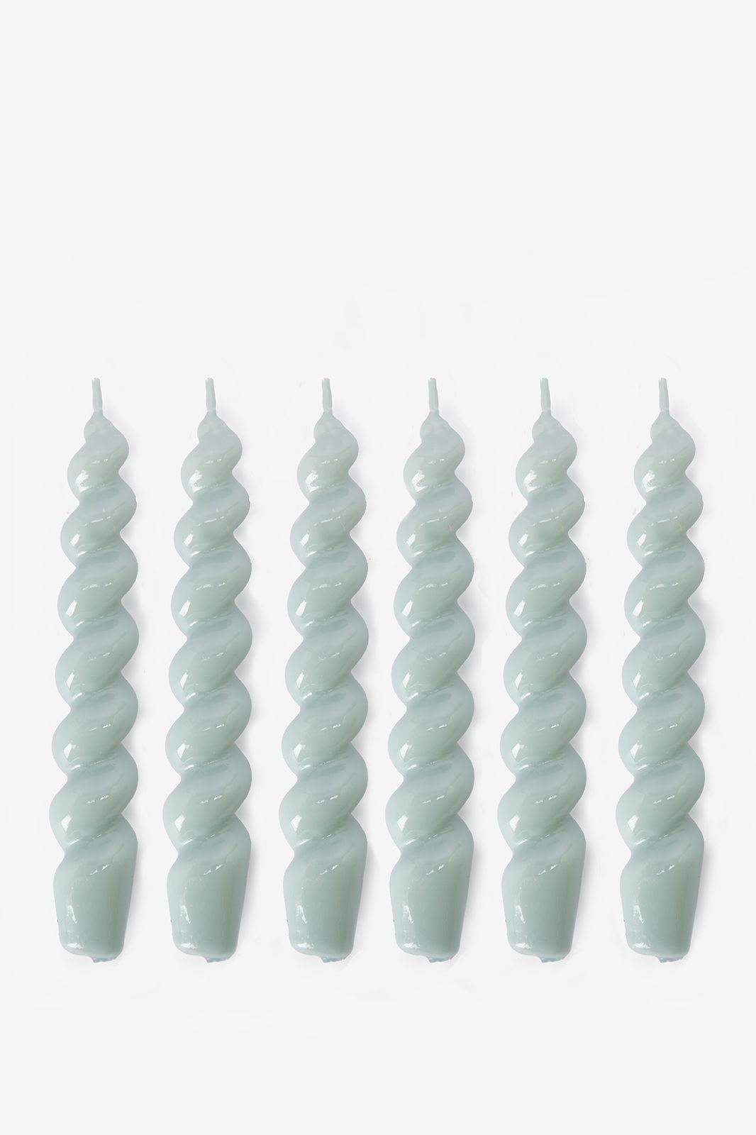 Blauwe draaikaarsen van Sissy-Boy. De swirl kaarsen komen in een set van 6, zijn gedraaid en hebben een blauwe kleur. Afmetingen: 17 cm. Materiaal: 100% wax.