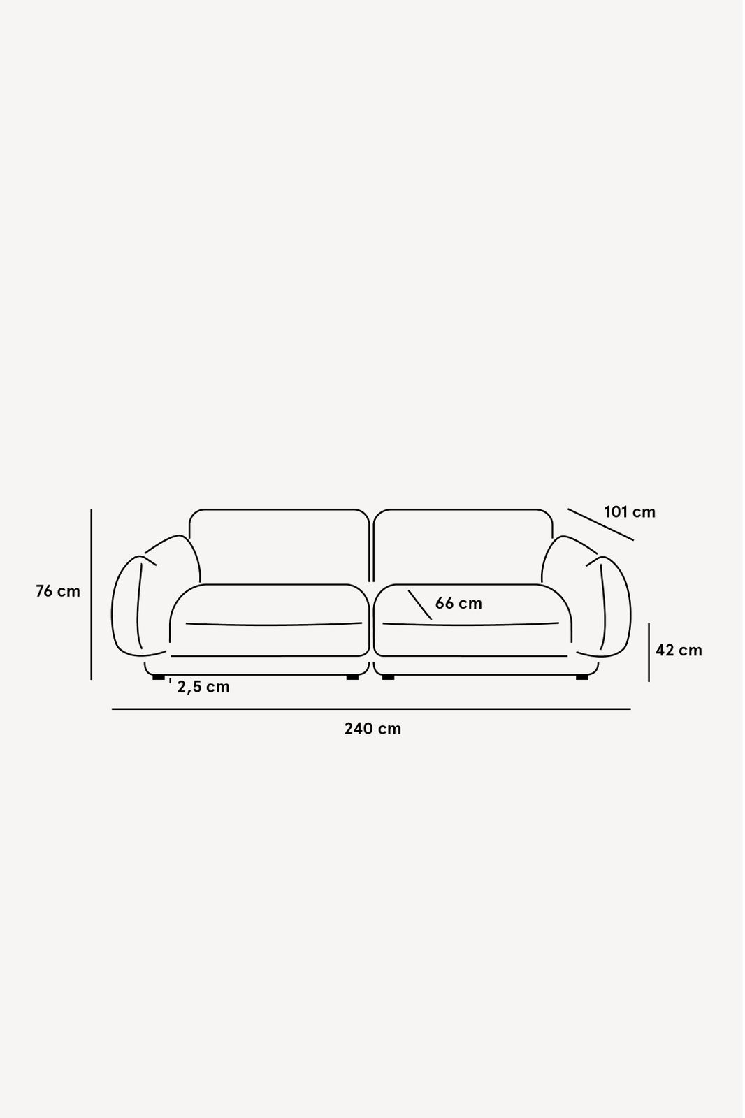 3-zits bank uit de Countess serie van Sissy-Boy. De serie bestaat uit zeven modulaire onderdelen, zodat je de bank precies kunt samenstellen naar jouw wensen en de ruimte die je hebt. Door de lage zitting geeft de Countess bank je interieur een moderne loft uitstraling. De stof is gemaakt van 100% polyester en de kleur is Royal Pistachio 52. De 3-zits bank heeft een totale afmeting van 240x101x76cm (lxbxh). De bank heeft een zitdiepte van 66 cm en een zithoogte van 42 cm. Meer weten over deze bank? Lees hier alle informatie over de Countess bank.