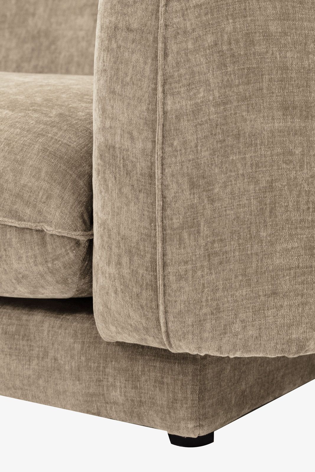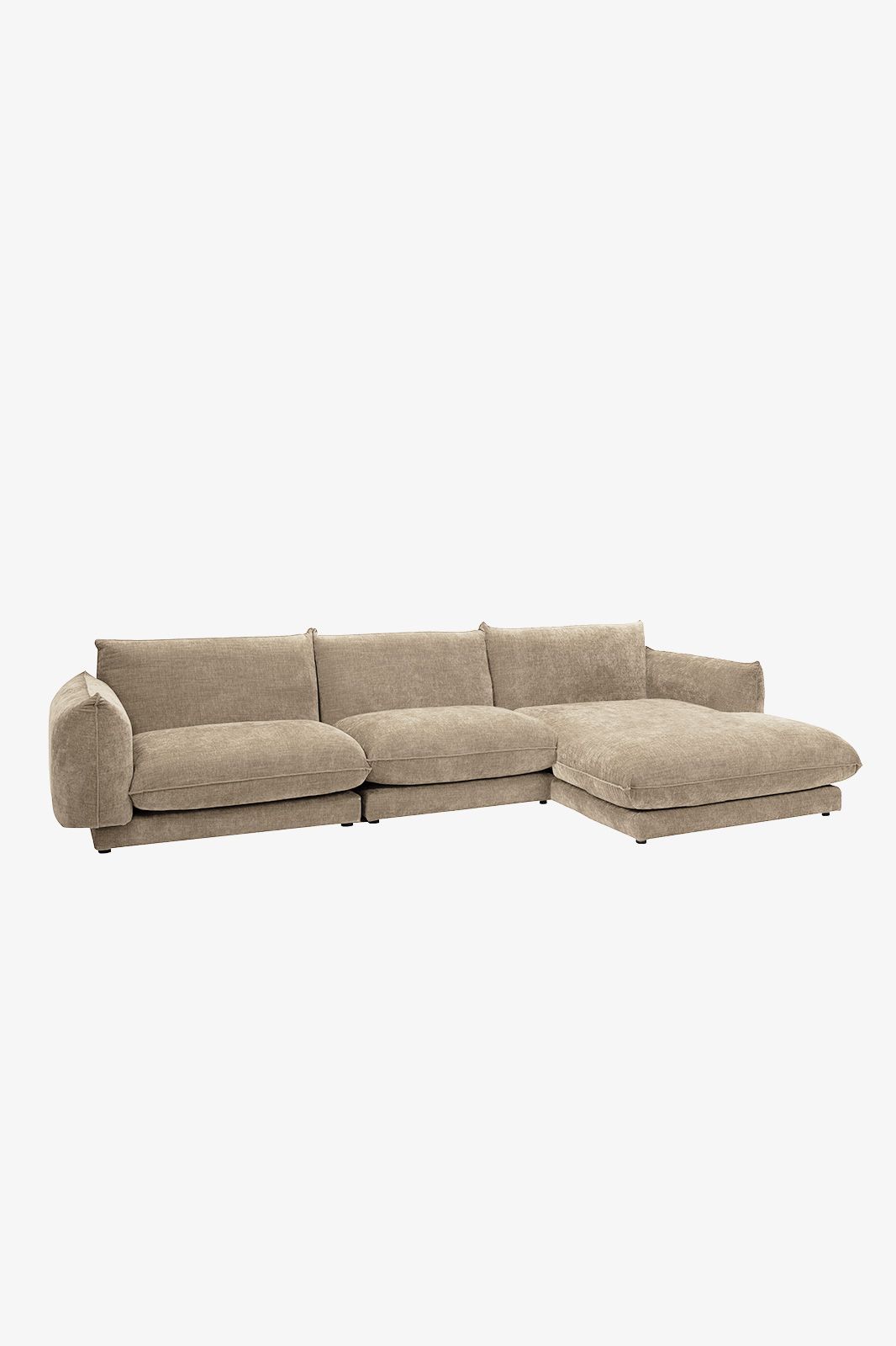 4-zits chaise longue rechts uit de Countess serie van Sissy-Boy. De serie bestaat uit zeven modulaire onderdelen, zodat je de bank precies kunt samenstellen naar jouw wensen en de ruimte die je hebt. Door de lage zitting geeft de Countess bank je interieur een moderne loft uitstraling. De stof is gemaakt van 100% polyester en de kleur is Artic Hessian. De 4-zits bank heeft een totale afmeting van 334x164x76 cm (lxbxh). De bank heeft een zitdiepte van 66 cm en 129 cm. Een zithoogte van 42 cm. De armleuning van de chaise longue zit rechts. Meer weten over deze bank? Lees hier alle informatie over de Countess bank.
