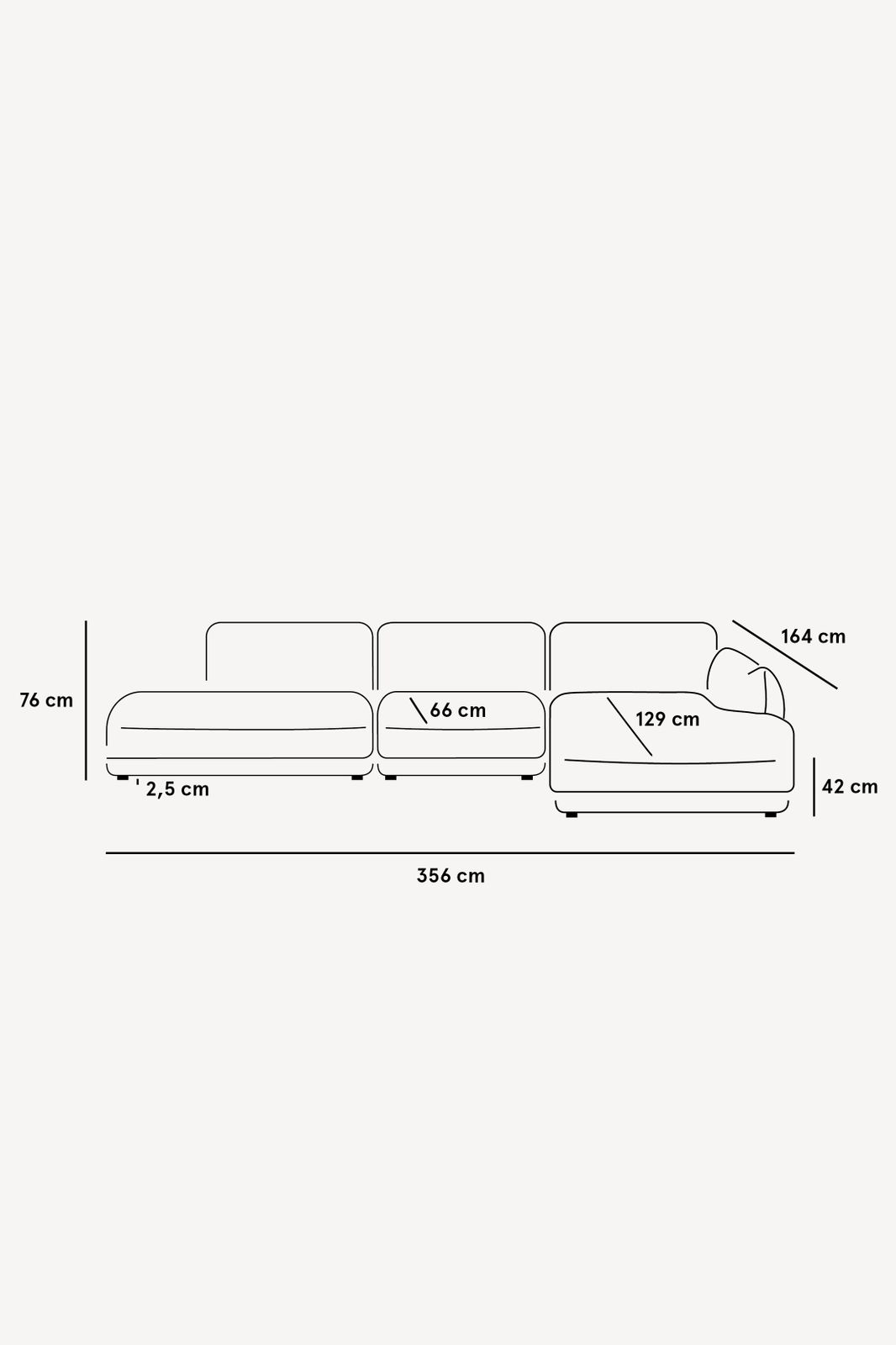 4-zits bank chaise longue rechts otto longue links uit de Countess serie van Sissy-Boy. De serie bestaat uit zeven modulaire onderdelen, zodat je de bank precies kunt samenstellen naar jouw wensen en de ruimte die je hebt. Door de lage zitting geeft de Countess bank je interieur een moderne loft uitstraling. De stof is gemaakt van 100% polyester en de kleur is Royal Bordeaux 37. De 4-zits bank heeft een totale afmeting van 356x164x76 cm (lxbxh). De bank heeft een zitdiepte van 69 cm en 129 cm en een zithoogte van 42 cm. Meer weten over deze bank? Lees hier alle informatie over de Countess bank.