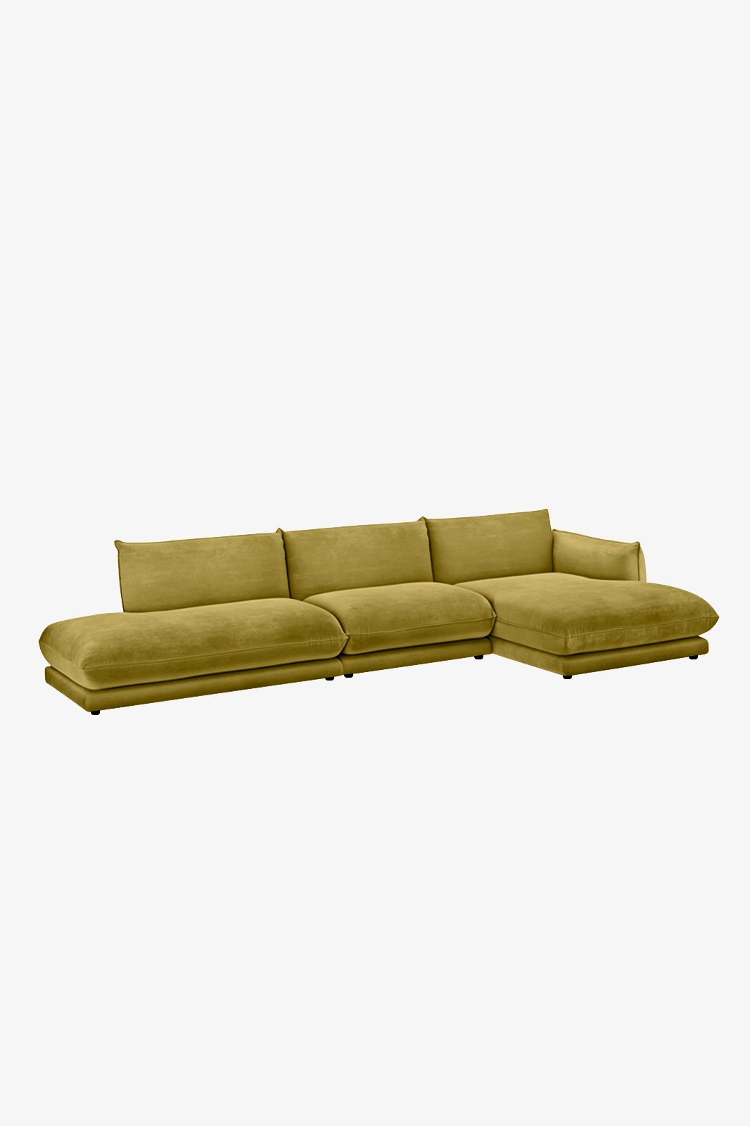 4-zits bank chaise longue rechts otto longue links uit de Countess serie van Sissy-Boy. De serie bestaat uit zeven modulaire onderdelen, zodat je de bank precies kunt samenstellen naar jouw wensen en de ruimte die je hebt. Door de lage zitting geeft de Countess bank je interieur een moderne loft uitstraling. De stof is gemaakt van 100% polyester en de kleur is Royal Pistachio 52. De 4-zits bank heeft een totale afmeting van 356x164x76 cm (lxbxh). De bank heeft een zitdiepte van 69 cm en 129 cm en een zithoogte van 42 cm. Meer weten over deze bank? Lees hier alle informatie over de Countess bank.