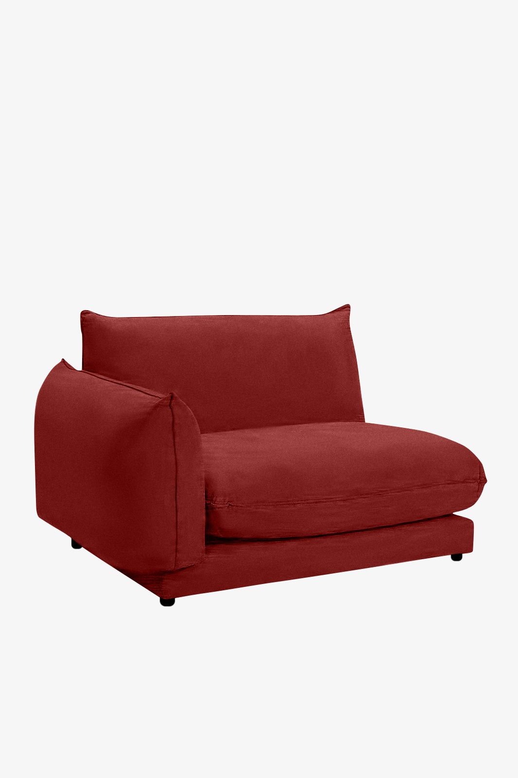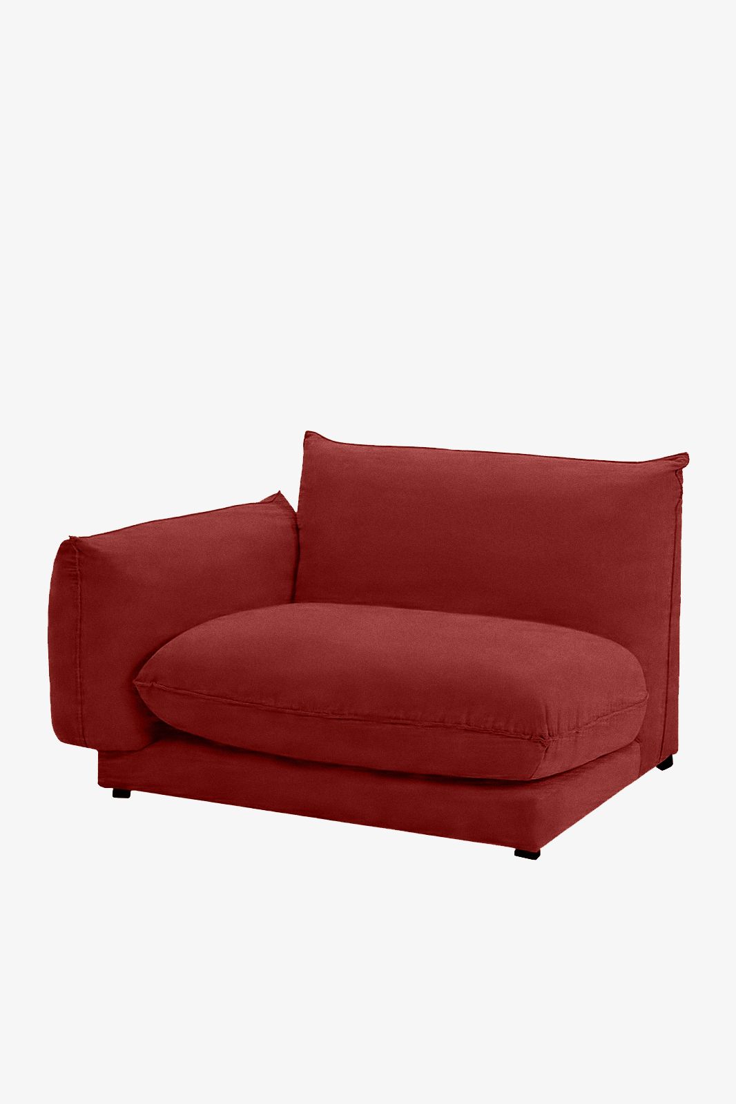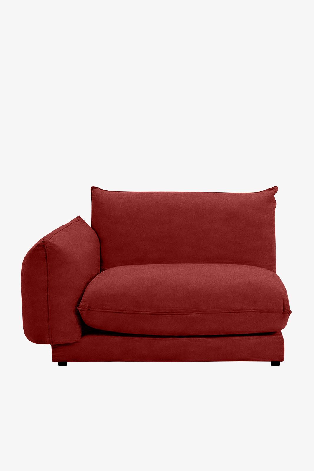 Het zitelement uit de Countess serie van Sissy-Boy. Dit zitelement heeft een leuning aan de linkerkant en maakt deel uit van een serie die bestaat uit zeven verschillende onderdelen, waarmee je de bank kunt samenstellen naar jouw wensen en de ruimte die je hebt. Door de lage zitting geeft de Countess bank je interieur een moderne loft uitstraling. De stof is gemaakt van 100% polyester en de kleur is Royal Bordeaux 37. Het zitelement heeft een totale afmeting van 120x76x101 cm (bxhxd). Het element heeft een zitdiepte van 66 cm en een zithoogte van 42 cm. Meer weten over deze bank? Lees hier alle informatie over de Countess stoel hoekelement.