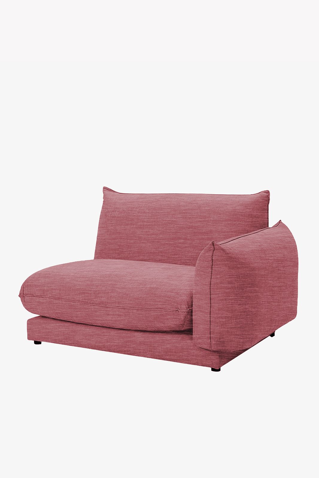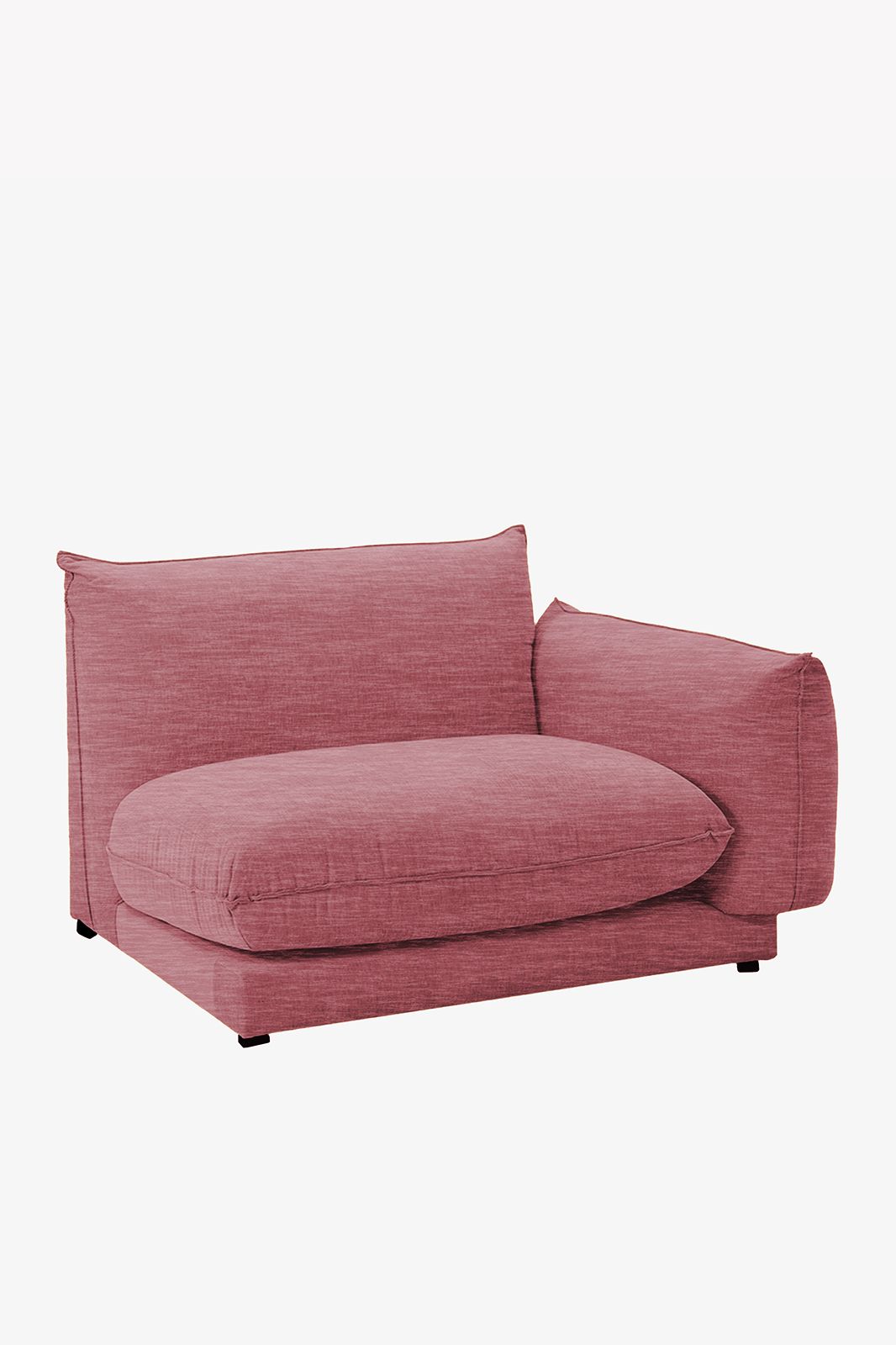 Het zitelement uit de Countess serie van Sissy-Boy. Dit zitelement heeft een leuning aan de rechterkant en maakt deel uit van een serie die bestaat uit zeven verschillende onderdelen, waarmee je de bank kunt samenstellen naar jouw wensen en de ruimte die je hebt. Door de lage zitting geeft de Countess bank je interieur een moderne loft uitstraling. De stof is gemaakt van 100% polyester en de kleur is Artic Rosehip. Het zitelement heeft een totale afmeting van 120x76x101 cm (bxhxd). Het element heeft een zitdiepte van 66 cm en een zithoogte van 42 cm. Meer weten over deze bank? Lees hier alle informatie over de Countess stoel hoekelement.
