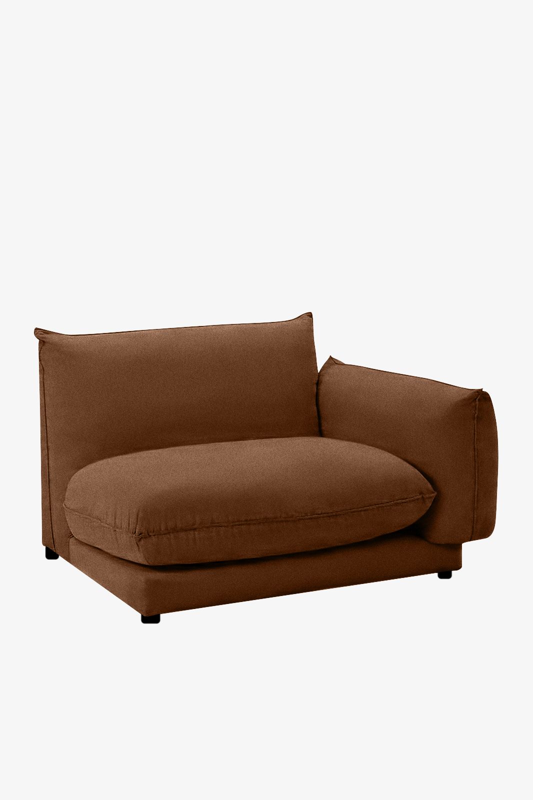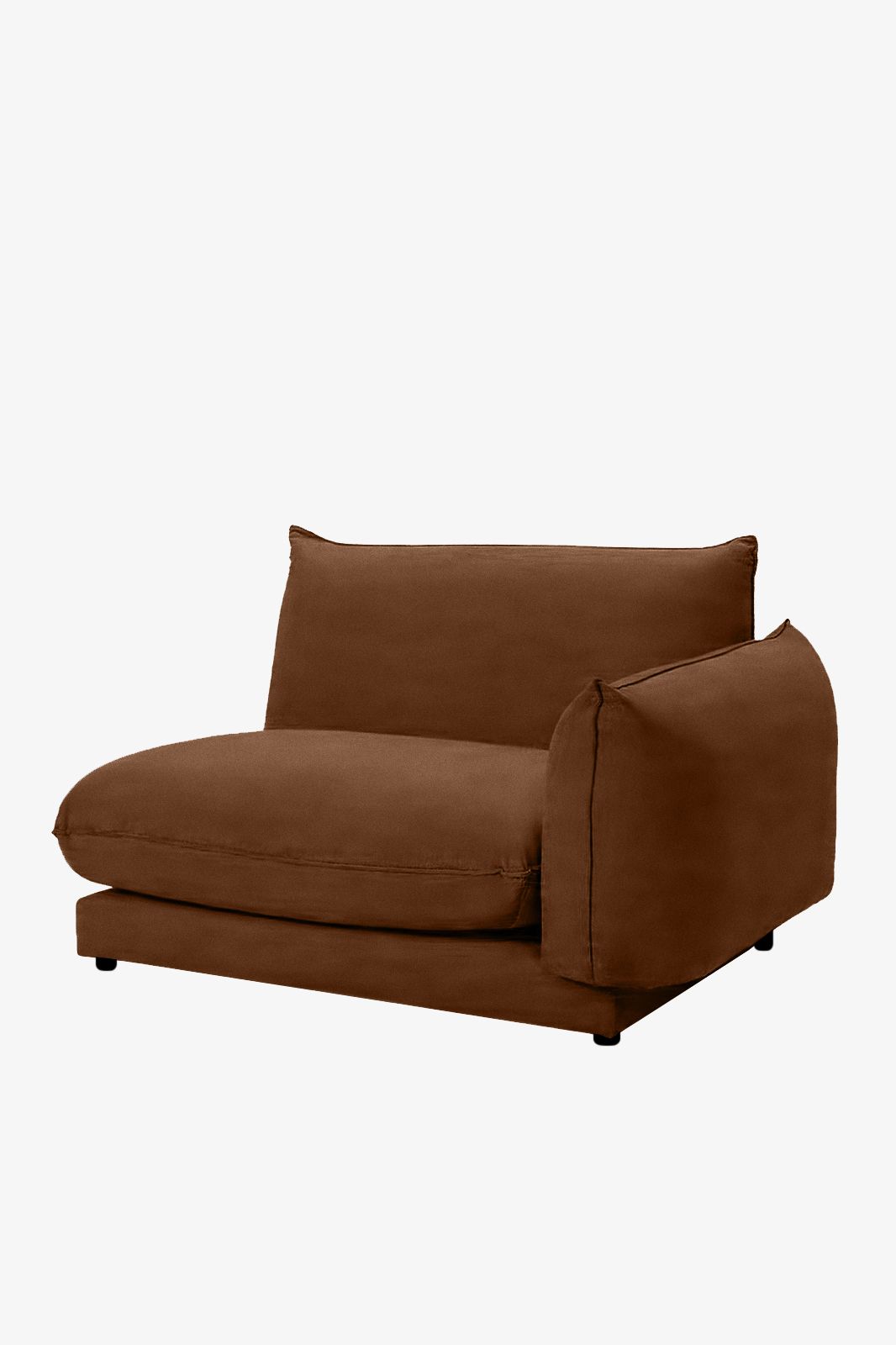 Het zitelement uit de Countess serie van Sissy-Boy. Dit zitelement heeft een leuning aan de rechterkant en maakt deel uit van een serie die bestaat uit zeven verschillende onderdelen, waarmee je de bank kunt samenstellen naar jouw wensen en de ruimte die je hebt. Door de lage zitting geeft de Countess bank je interieur een moderne loft uitstraling. De stof is gemaakt van 100% polyester en de kleur is Royal Wood 108. Het zitelement heeft een totale afmeting van 120x76x101 cm (bxhxd). Het element heeft een zitdiepte van 66 cm en een zithoogte van 42 cm. Meer weten over deze bank? Lees hier alle informatie over de Countess stoel hoekelement.