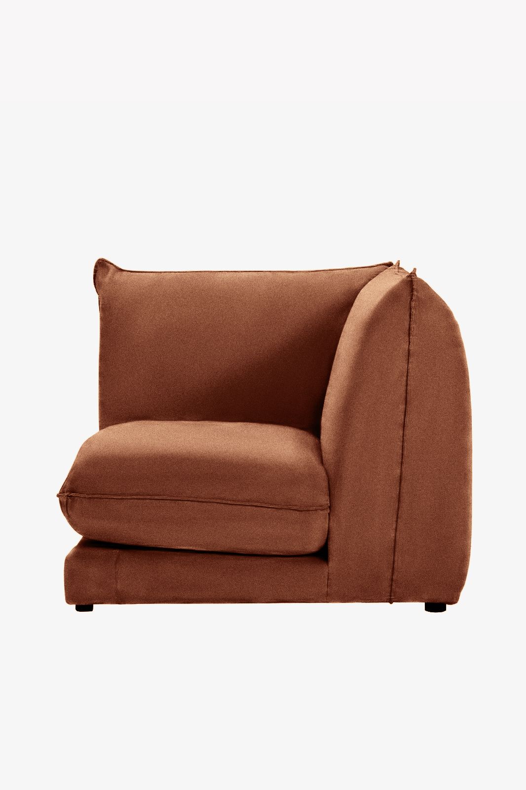 Het verbindingselement uit de Countess serie van Sissy-Boy. Dit zitelement heeft een hoge aansluitende leuning aan de linkerkant en maakt deel uit van een serie die bestaat uit zeven verschillende onderdelen, waarmee je de bank kunt samenstellen naar jouw wensen en de ruimte die je hebt. Door de lage zitting geeft de Countess bank je interieur een moderne loft uitstraling. De stof is gemaakt van 100% polyester en de kleur is Salvador Brown 15. Het zitelement heeft een totale afmeting van 97x76x101 cm (bxhxd). Het element heeft een zitdiepte van 66 cm en een zithoogte van 42 cm. Meer weten over deze bank? Lees hier alle informatie over de Countess stoel hoekelement.
