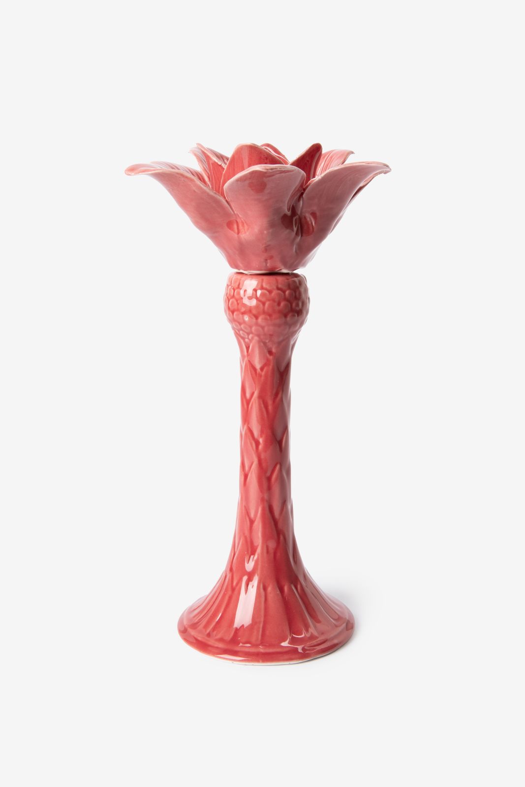 Donkerroze kandelaar met palmboom van Sissy-Boy. De kandelaar heeft een donkerroze kleur en is in de vorm van een palmboom. Afmetingen: 11,8 cm x 22,3 cm. Materiaal: 100% keramiek.