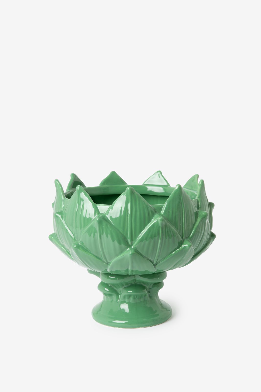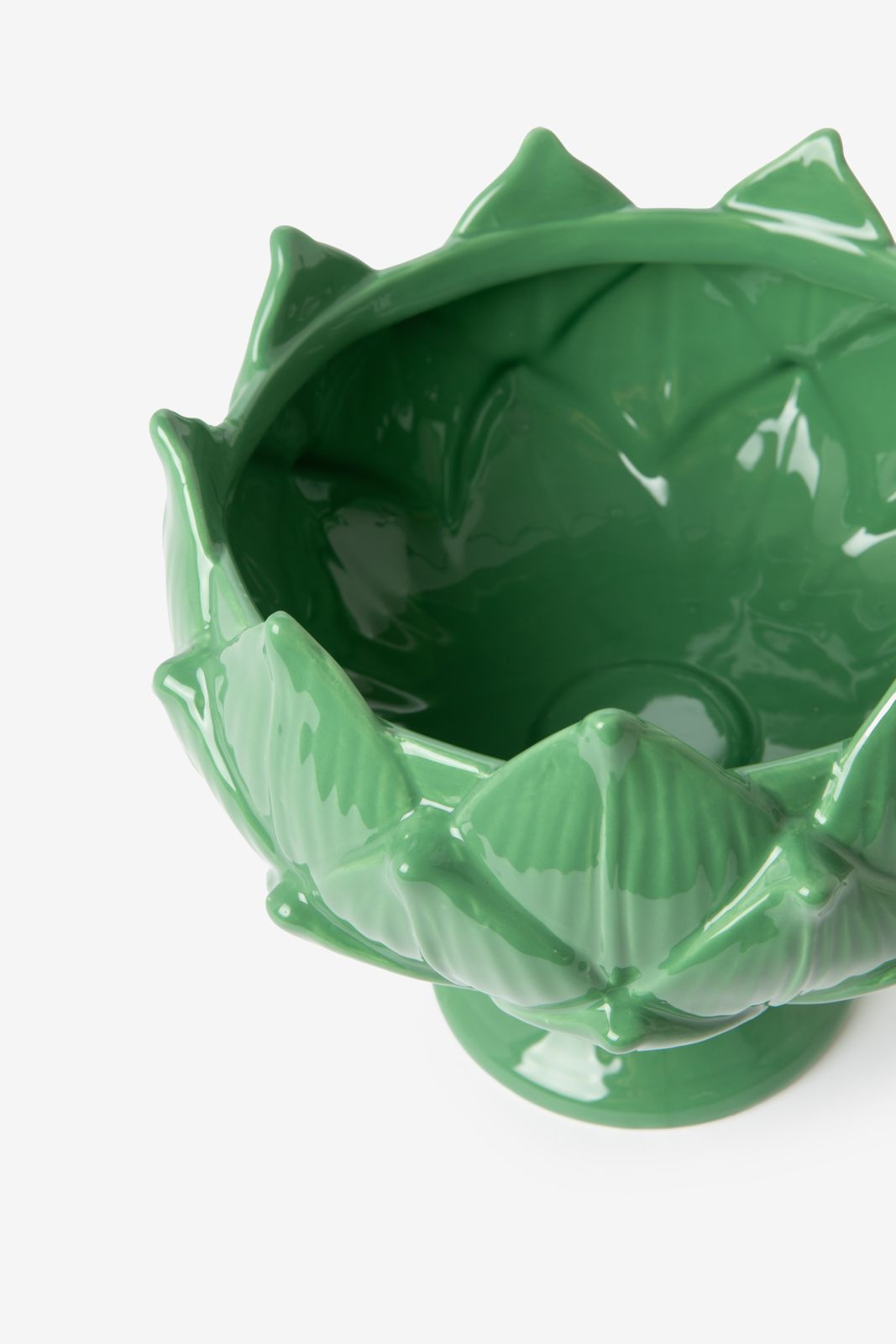 Groene artisjok schaal van Sissy-Boy. De schaal heeft een groene kleur en de vorm van een artisjok. Afmetingen: 17,5 cm. Materiaal: 100% steen.