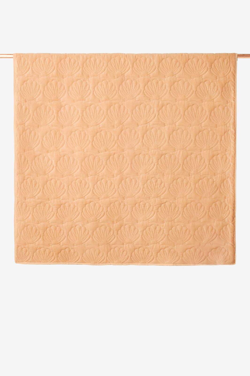 Lichtoranje sprei met schelpen van Sissy-Boy. De sprei heeft een all-over schelpen patroon in de stof verwerkt. Daarnaast heeft de sprei twee kanten: één met een oranje schelpen patroon en één met een bohemian all-over print. Wasadvies: apart wassen op 30 graden, niet in de droger, strijken op lage temperatuur, niet bleken en niet stomen. Afmeting: 130x180 cm. Materiaal: 100% katoen, vulling 100% polyester.