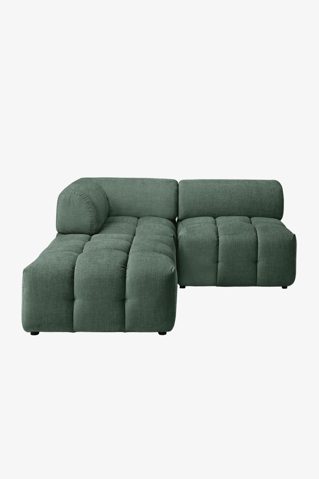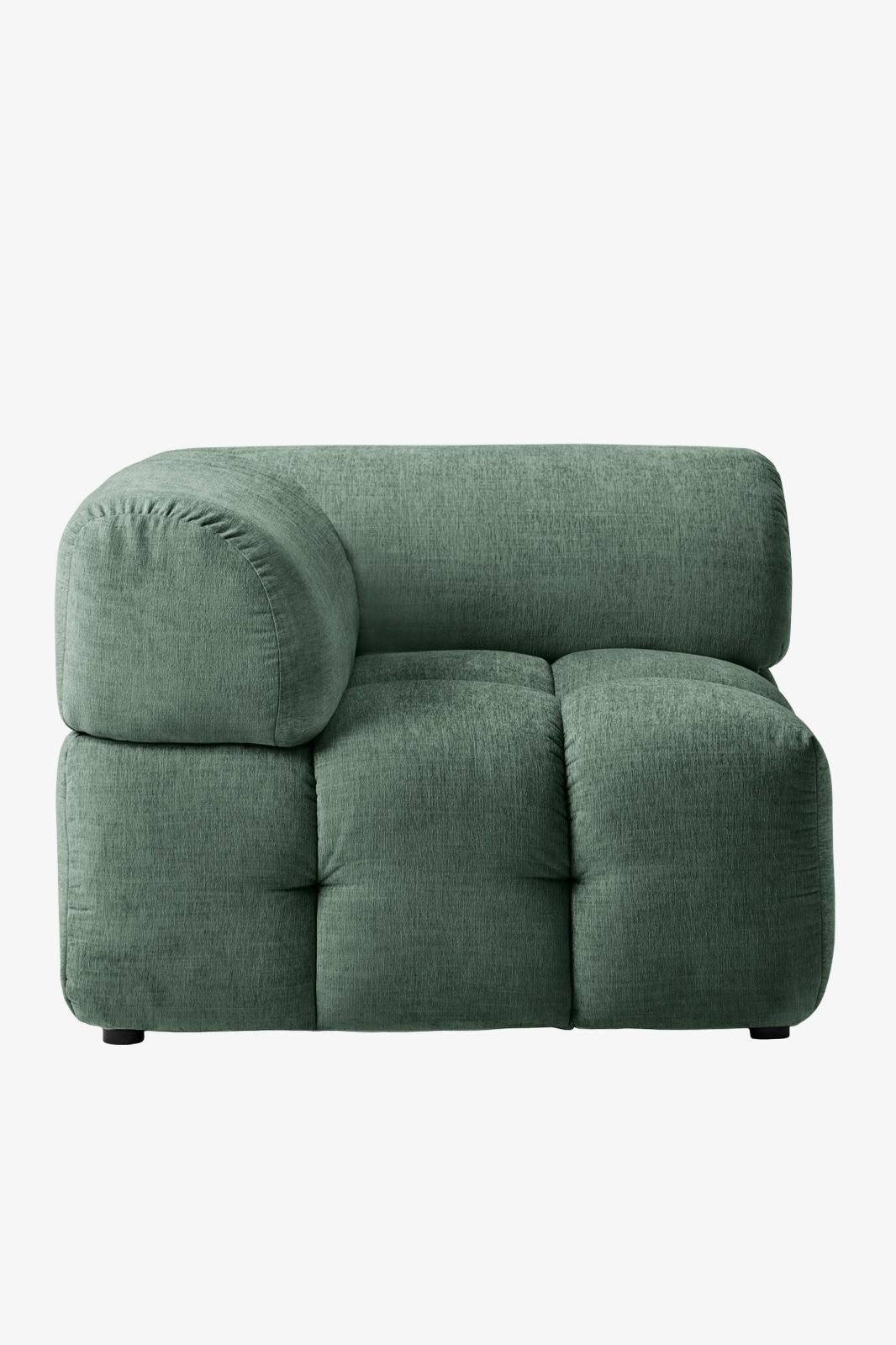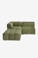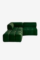 Modulaire bank uit de Marquis serie van Sissy-Boy. De bank bestaat uit een hoek, een hocker en een zitting/stoel. De bank is 100% modulair je kan er dus eindeloos veel opstellingen mee maken. Vul je modulaire bank bijvoorbeeld nog aan met een extra hoek of een zitting. De verbinding tussen de elementen is onzichtbaar weg te klikken, waardoor je de elementen ook vrij in de ruimte kan plaatsen. Eindeloos veel opties dus! Door de doorgestikte kussens heeft de bank de ultieme cozy uitstraling. Een echte bank om op weg te dromen. De stof is gemaakt van polyester. De kleur van de groene bank is Artic Thyme. Het meubel heeft een totale breedte van 186 cm, een totale hoogte van 74 cm en een totale diepte van 186 cm. De zitdiepte is 60 cm en de zithoogte is 44 cm. Wil je meer informatie over deze bank? Lees hier alles over de Marquis.