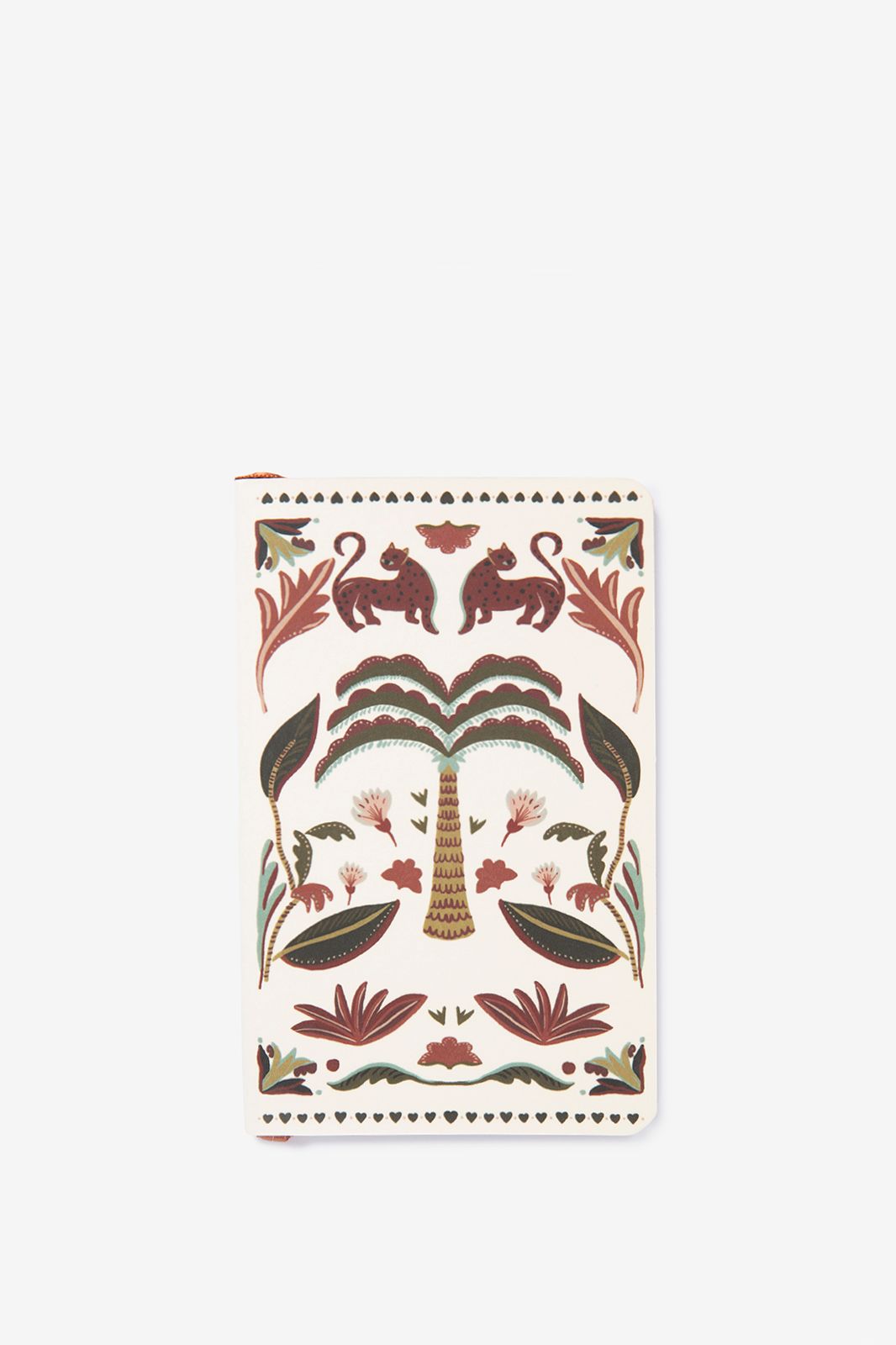 Multicolour notitieboek met leopard palm print van Sissy-Boy. Het notitieboek heeft een softcover met een all-over print. Verder heeft het notitieboek een A6-formaat zonder lijnen op het papier. Afmeting: 9 x 14 cm. Materiaal: 100% papier.