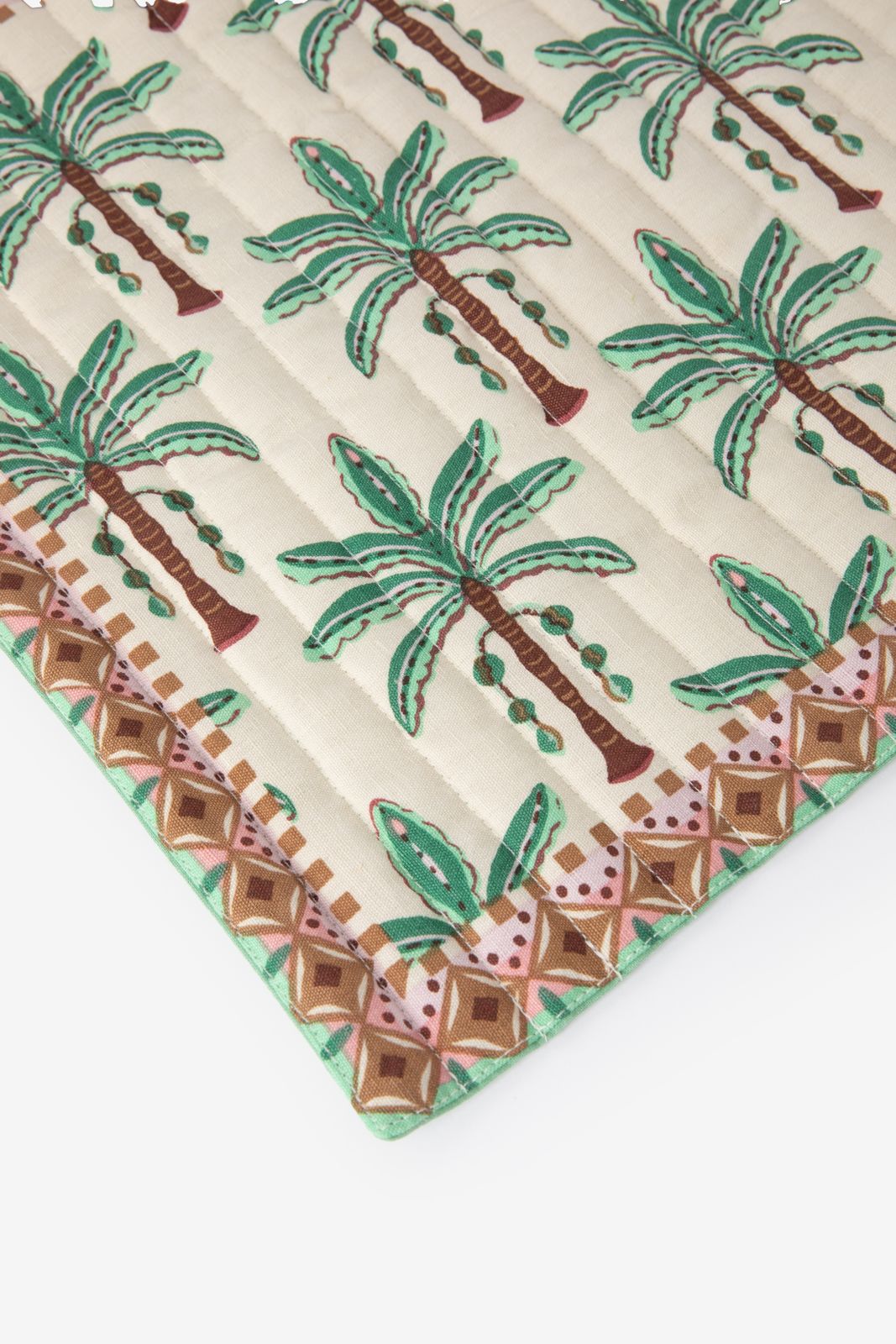 Multicolour placemats met palmbomen van Sissy-Boy. De placemats hebben een witte kleur met een all-over palmbomen print met groene en roze details. Afmetingen: 35 cm x 50 cm. Materiaal: 50% katoen, 50% linnen.