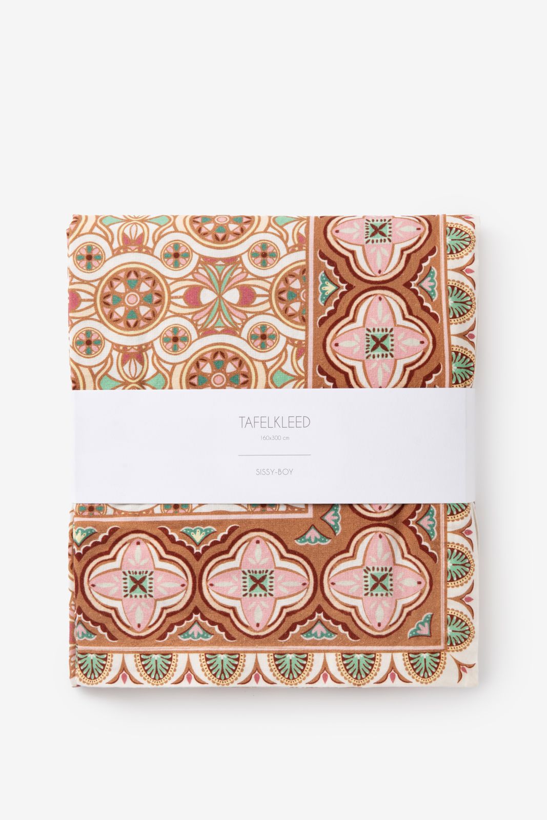 Multicolour tafelkleed met print van Sissy-Boy. Het tafelkleed heeft een lichtbruine kleur met een all-over multicolour print met roze en groene details. Wasadvies: wassen op 40 graden, strijken op middelmatige temperatuur, niet in de droger. Afmetingen: 160 x 300 cm. Materiaal: 100% katoen.