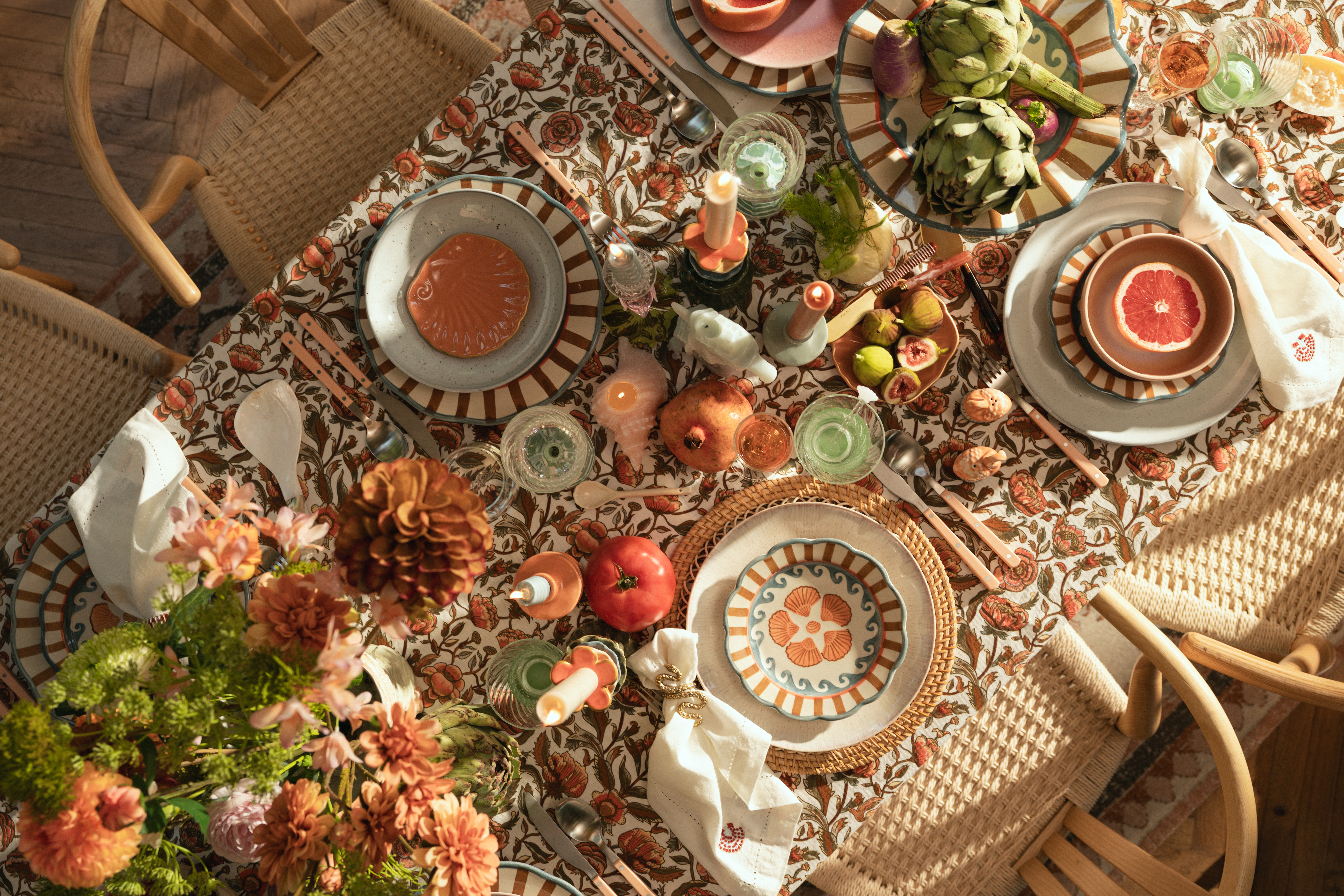 Deze herfst neemt onze nieuwe homeware-collectie je mee naar een wereld waar nostalgie en tijd samenkomen, en waar gevoel de sfeer bepaalt. Thuis is een plek vol herinneringen: de zachtheid van een favoriete kussen, het zachte ochtendlicht op tafel, de spullen die je in de loop der jaren verzamelt. Deze collectie viert een eigentijdse, eclectische elegantie, waarin verleden en heden samenkomen in een palet van warme roesttinten, bloemenprints en zachte herfstkleuren.