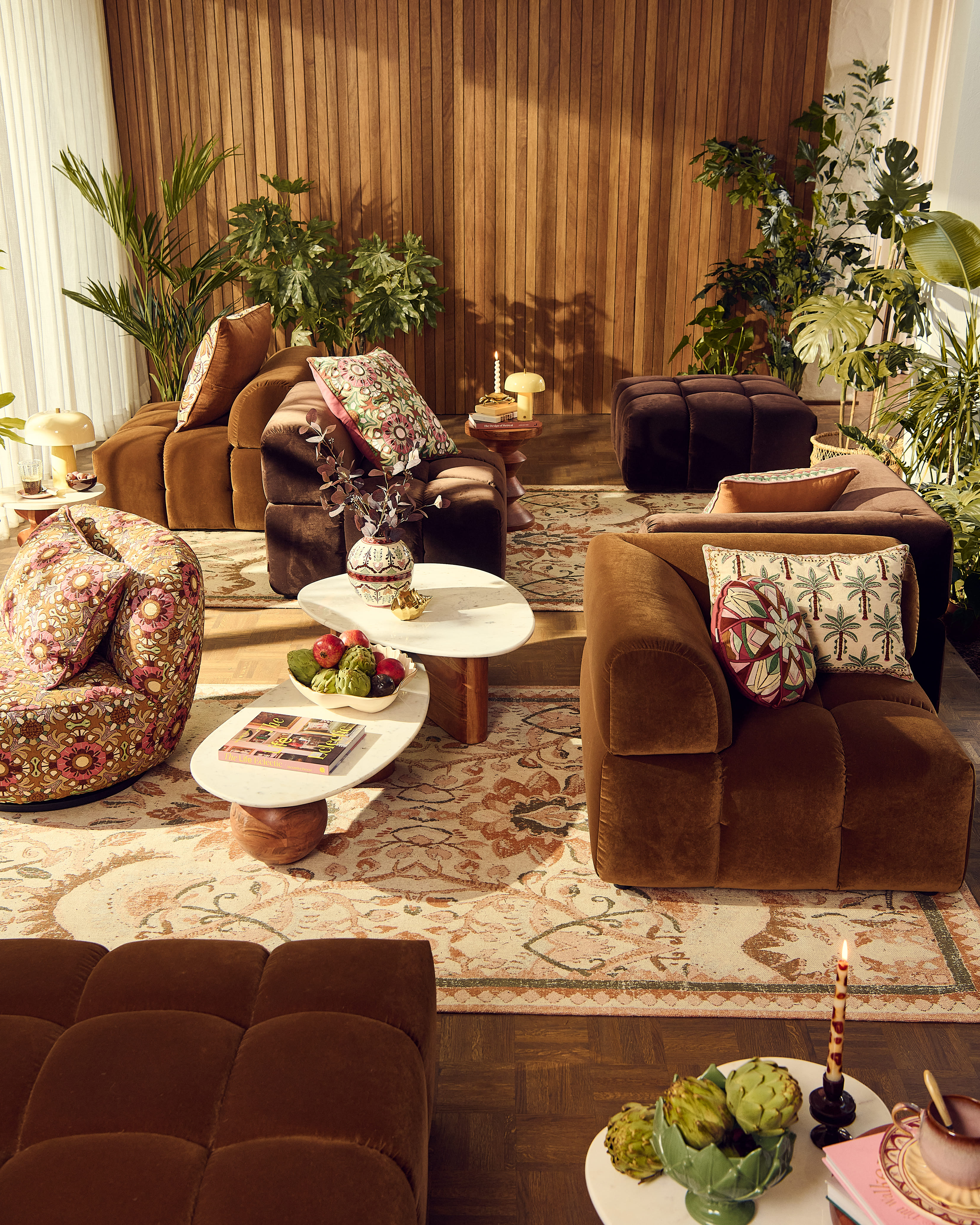 In meubels, servies, textiel en decoratie komt aandacht voor materiaal en afwerking samen. Sculpturale lijnen, rijke oppervlakken en gelaagde prints geven het interieur karakter en samenhang. Elk element draagt bij aan een omgeving die uitnodigt en blijft bloeien.