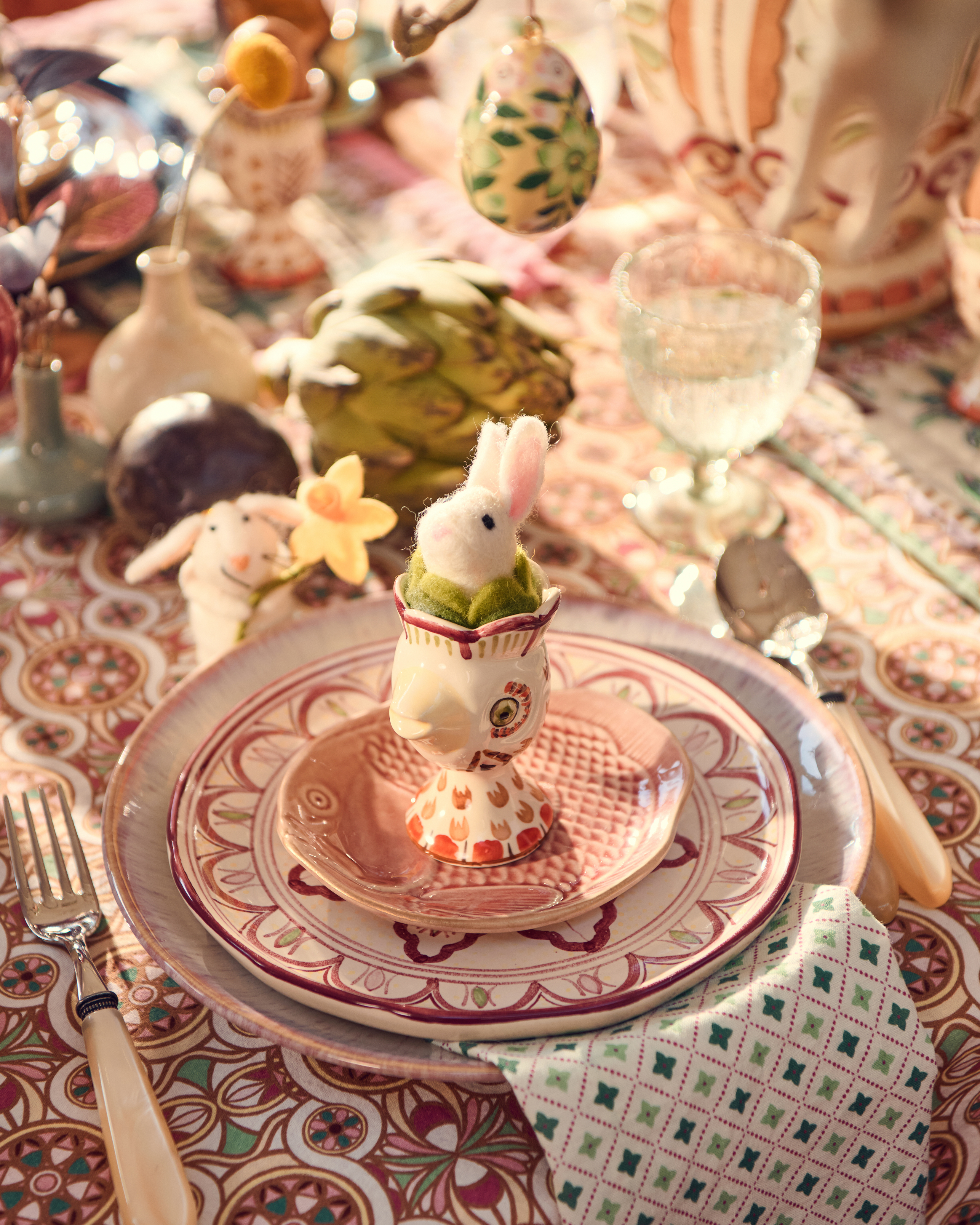 In alles, van keramiek tot ornamenten, staat design centraal. De collectie voelt verzameld en gelaagd, met ruimte voor contrast en onverwachte combinaties, zelfs een konijn kan moeiteloos zijn plek vinden aan tafel. Objecten mogen verschuiven, van plek veranderen en elk jaar opnieuw tevoorschijn komen.