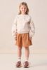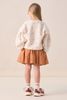 Beige sweater met hartjes van Sissy-Boy. De sweater heeft lange pofmouwen met verlaagde schouders, een ronde halslijn, ribboorden en all-over oranje hartjes embroidery. Materiaal: 100% katoen.