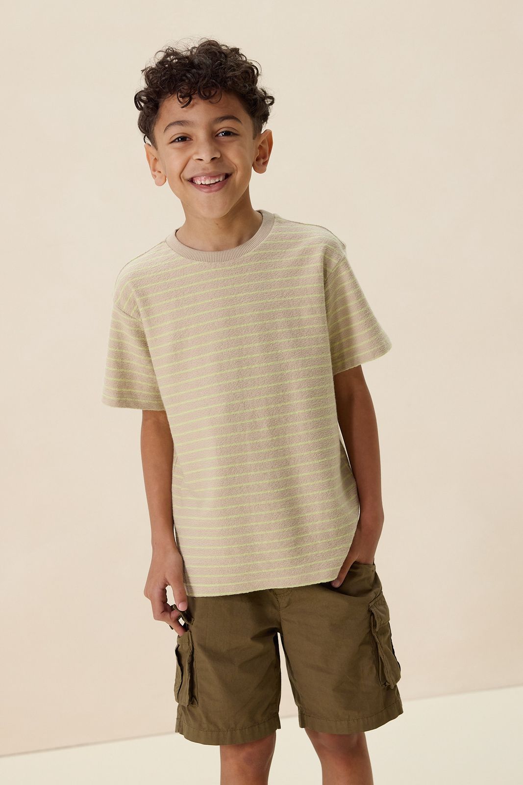 Beige t-shirt met strepen van Sissy-Boy. Het T-shirt heeft korte mouwen, een ronde halslijn, een regular fit en een gestreept patroon met dunne horizontale strepen. Materiaal: 100% katoen.