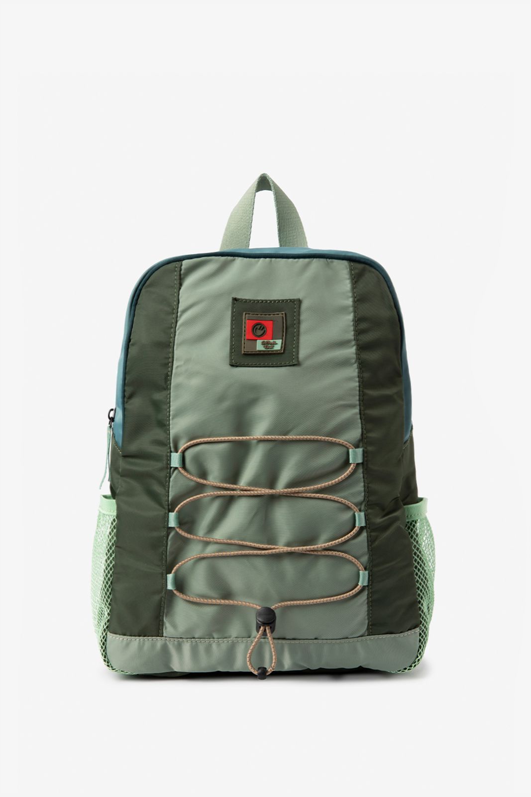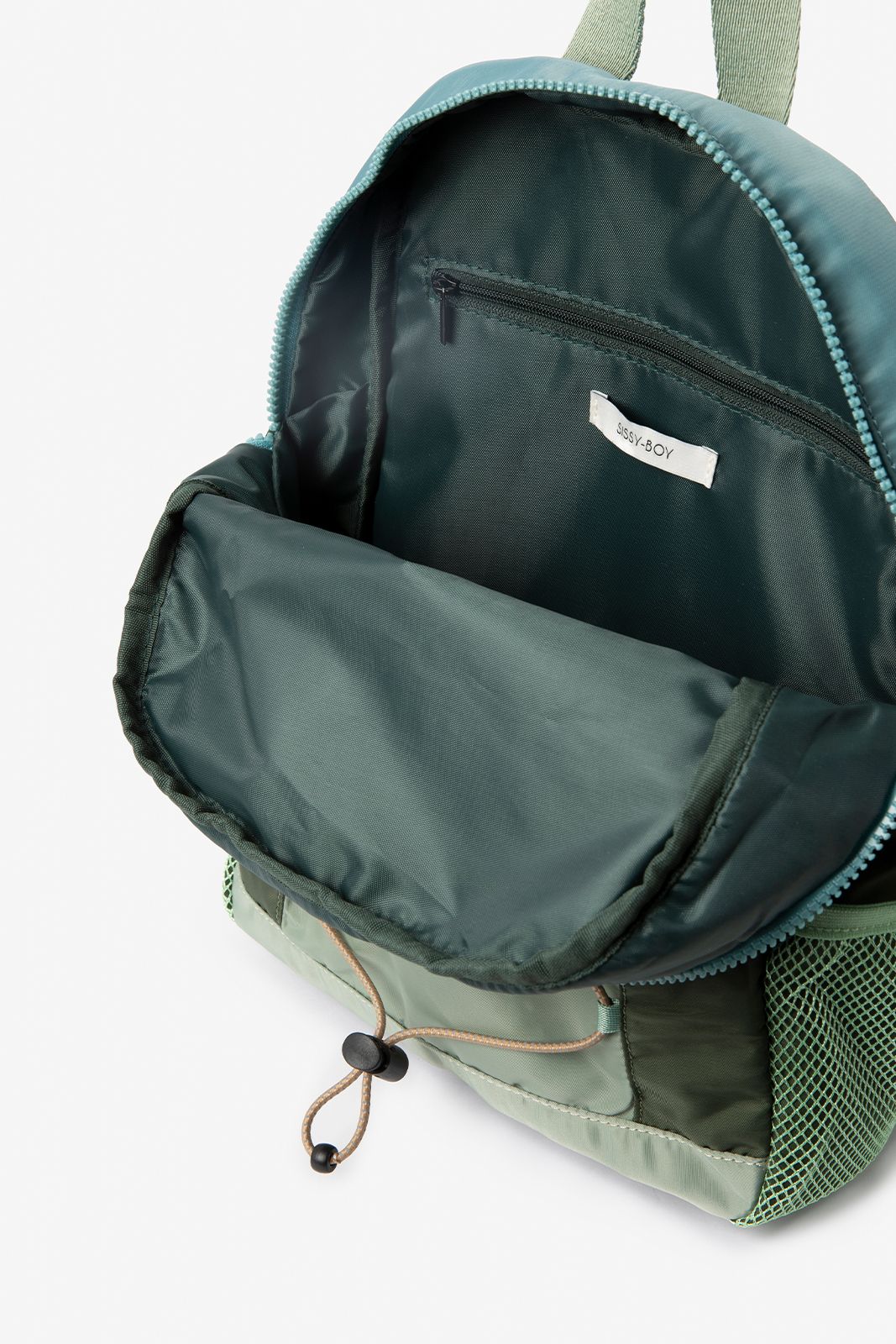 Donkergroene nylon rugtas van Sissy-Boy. De tas heeft een binnenvak met rits, ritssluiting en verstelbare straps. Verder heeft de tas een donkergroene kleur met blauwe details en een patch detail op de voorzijde. Afmetingen: 33 cm x 30 cm x 10 cm. Materiaal: 100% nylon.